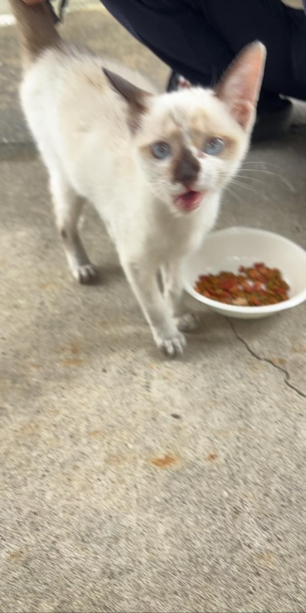 生後4カ月のシャム猫で人懐っこい性格で人を見たらすぐに鳴きます。
