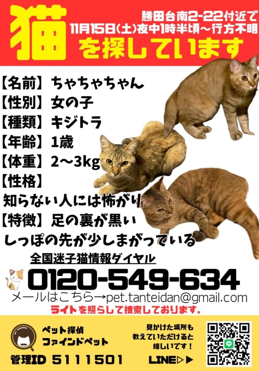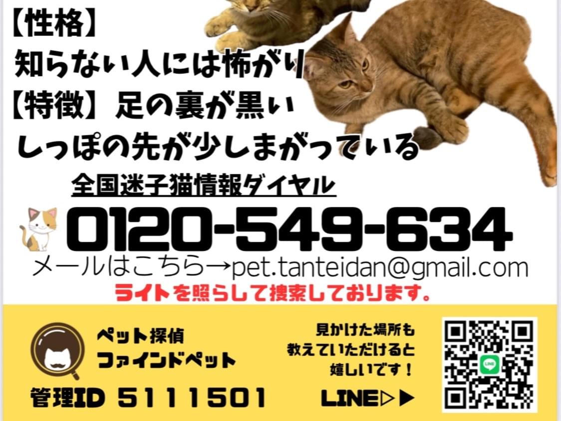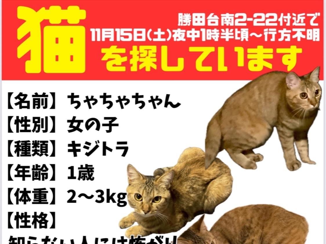 警戒心が強いので保護されている可能性は低いかもしれませんが情報をお持ちの方がいれば教えてください。よろしくお願いします。