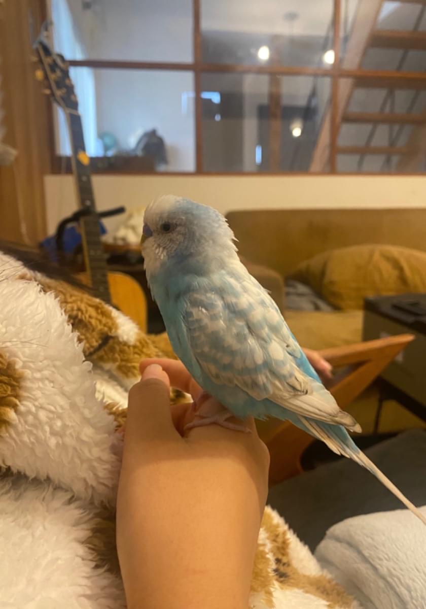 白と青カラーのセキセイインコです。