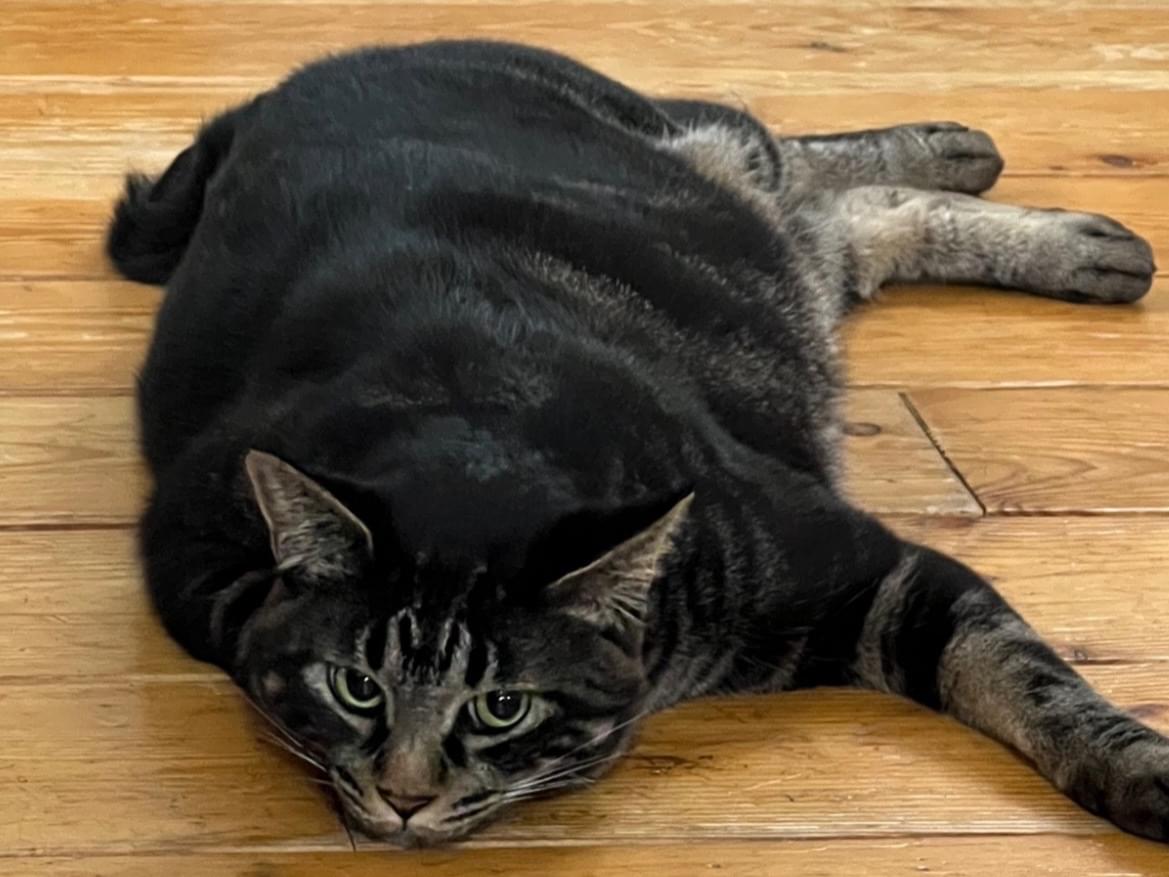 大きなカギ尻尾のほとんど黒のキジトラ猫を探しています
