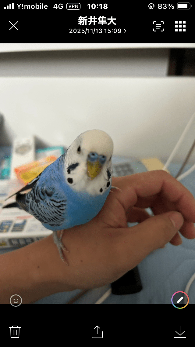 ホーム保護鳥千葉県雄のセキセイインコを…雄のセキセイインコを保護しました。管理編集するポスター掲載終了最終更新日時:2025/11/18 10:33写真動画情報用件保護性別オス年齢成鳥場所千葉県 市川市中山発生日時2025年10月17日(金)保護者ちゅうさん説明庭の木に止まっていました。 人に慣れていて逃げませんでした。連絡先URL未設定掲示板情報交換のための掲示板です。ユーザーからの情報提供、オーナーからの連絡などにご利用下さいませ。書き込んだ情報は、オーナーのメールに通知されます。コメントを書き込むセキセイインコふくすけ返信3件2025/11/20 01:18