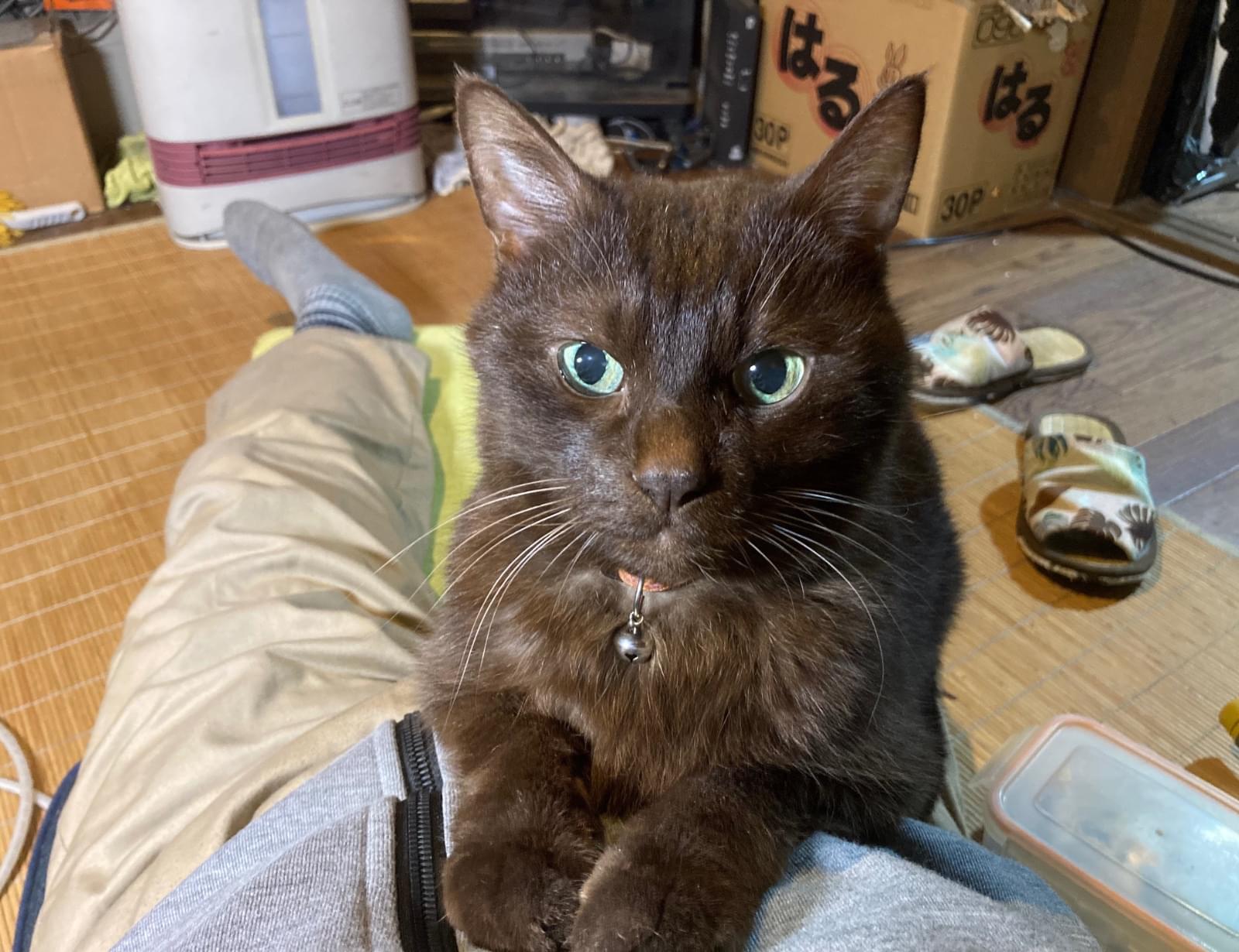 普段はマンションの廊下をウロウロする程度だったのですが、1階まで降りたようです。人馴れはしてるので近づいても逃げたりしません。てんかんの持病があるので毎日薬を投与しています。