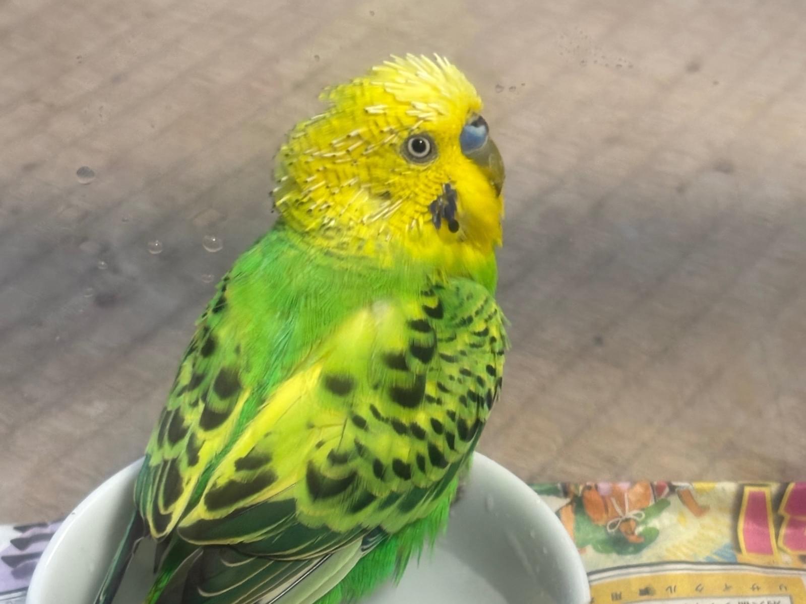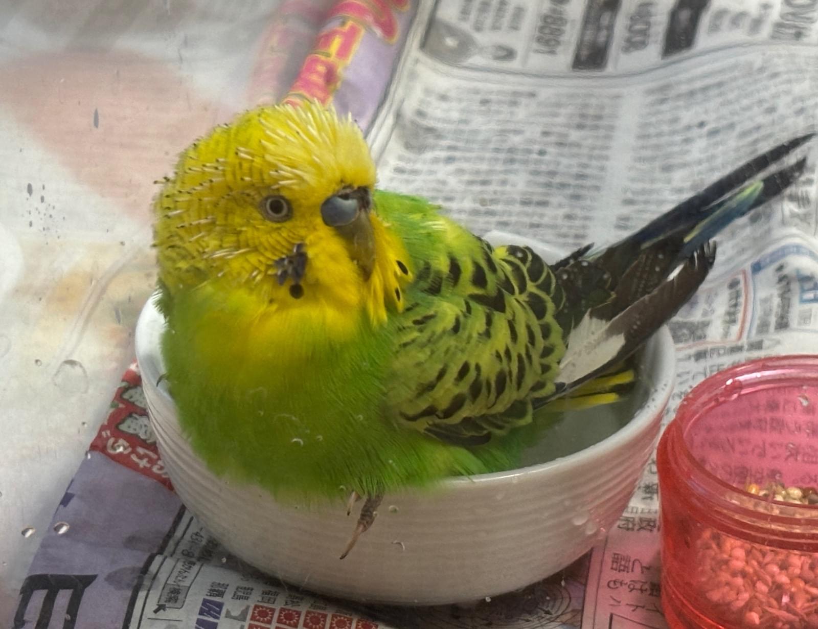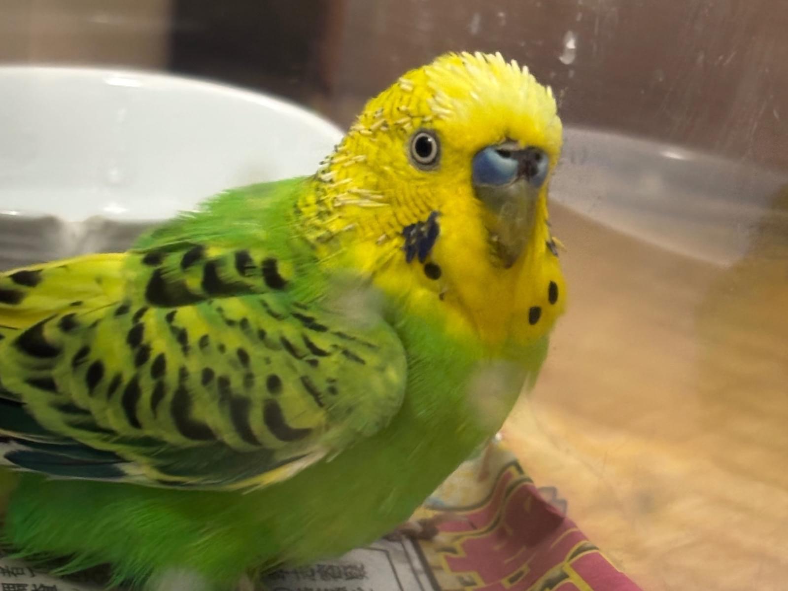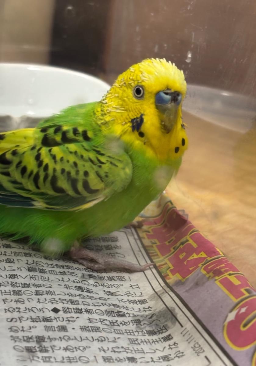 昨日16時頃、庭に飛んできたセキセイインコを保護しました。