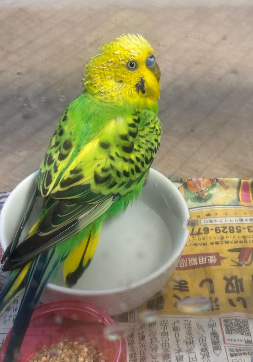 うちではオカメインコを飼っているので、オカメインコの餌をあげたら、お腹がすいてたようでガツガツ食べてました。水も飲んでおり元気あります。