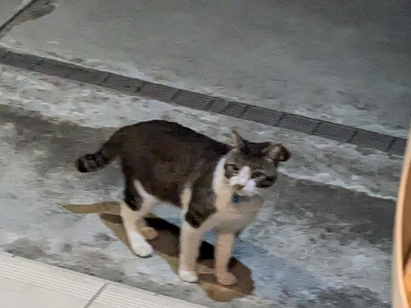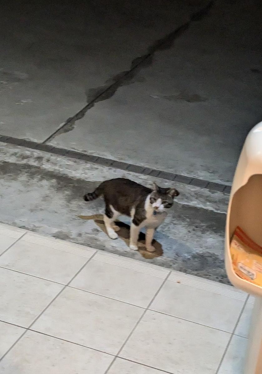 青い首輪をしているのですが、昼も夜も付近にいるので迷い猫かもと思い登録しました。