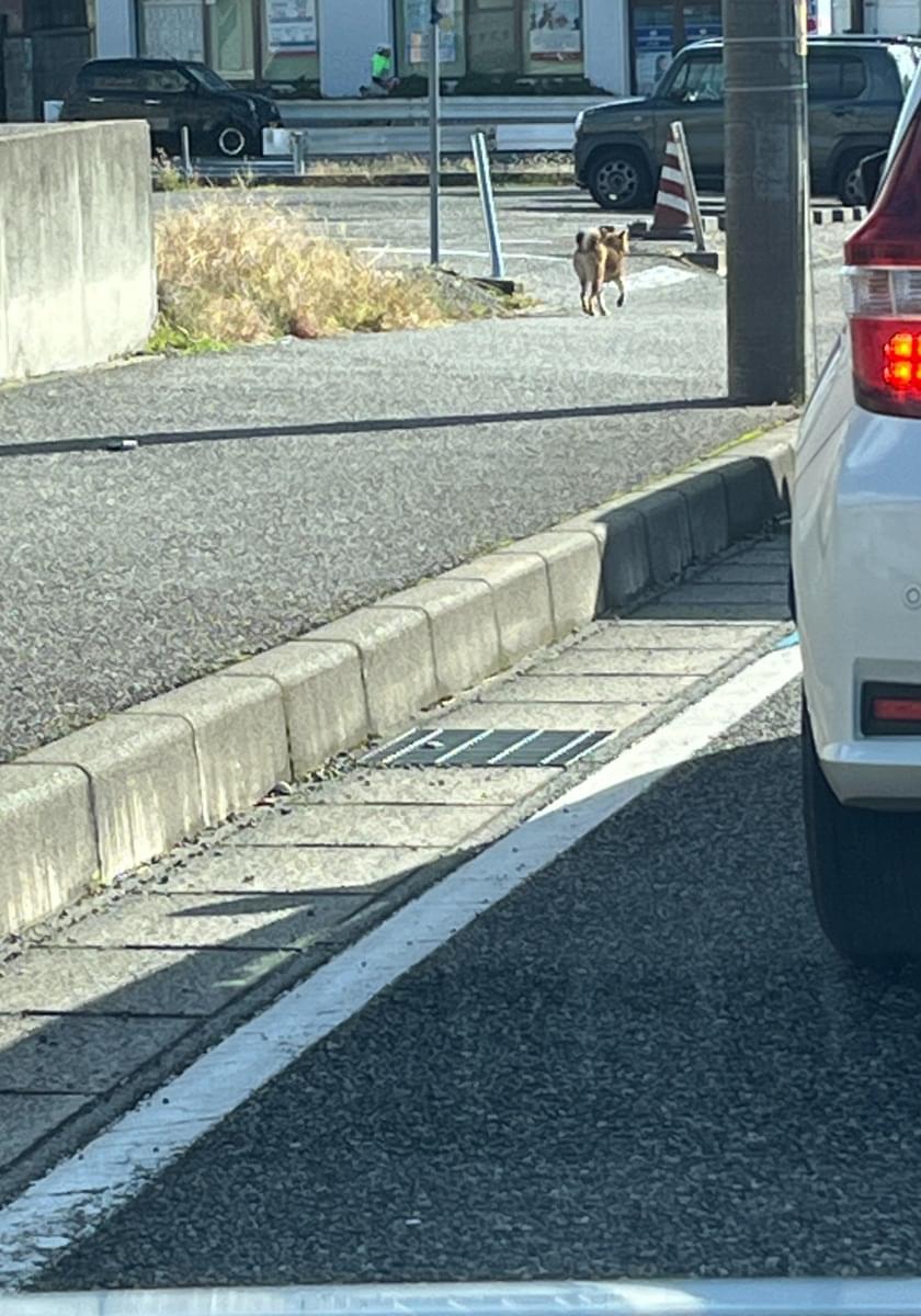 今日の昼頃、新潟市西区寺尾と西大通の交差点で茶色の柴犬が一匹で歩いているのを目撃しました。
