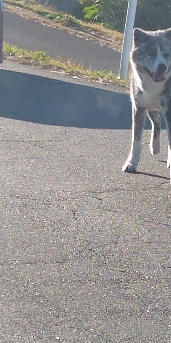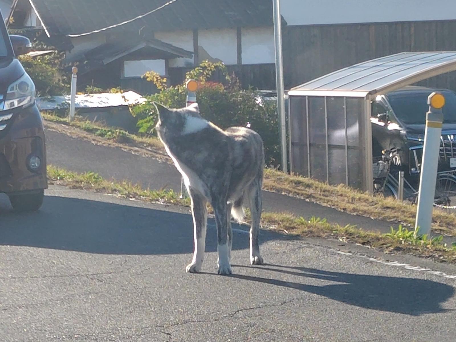 北区辛川市場 中川橋の土手で首輪をしていない秋田犬が歩いているのを目撃