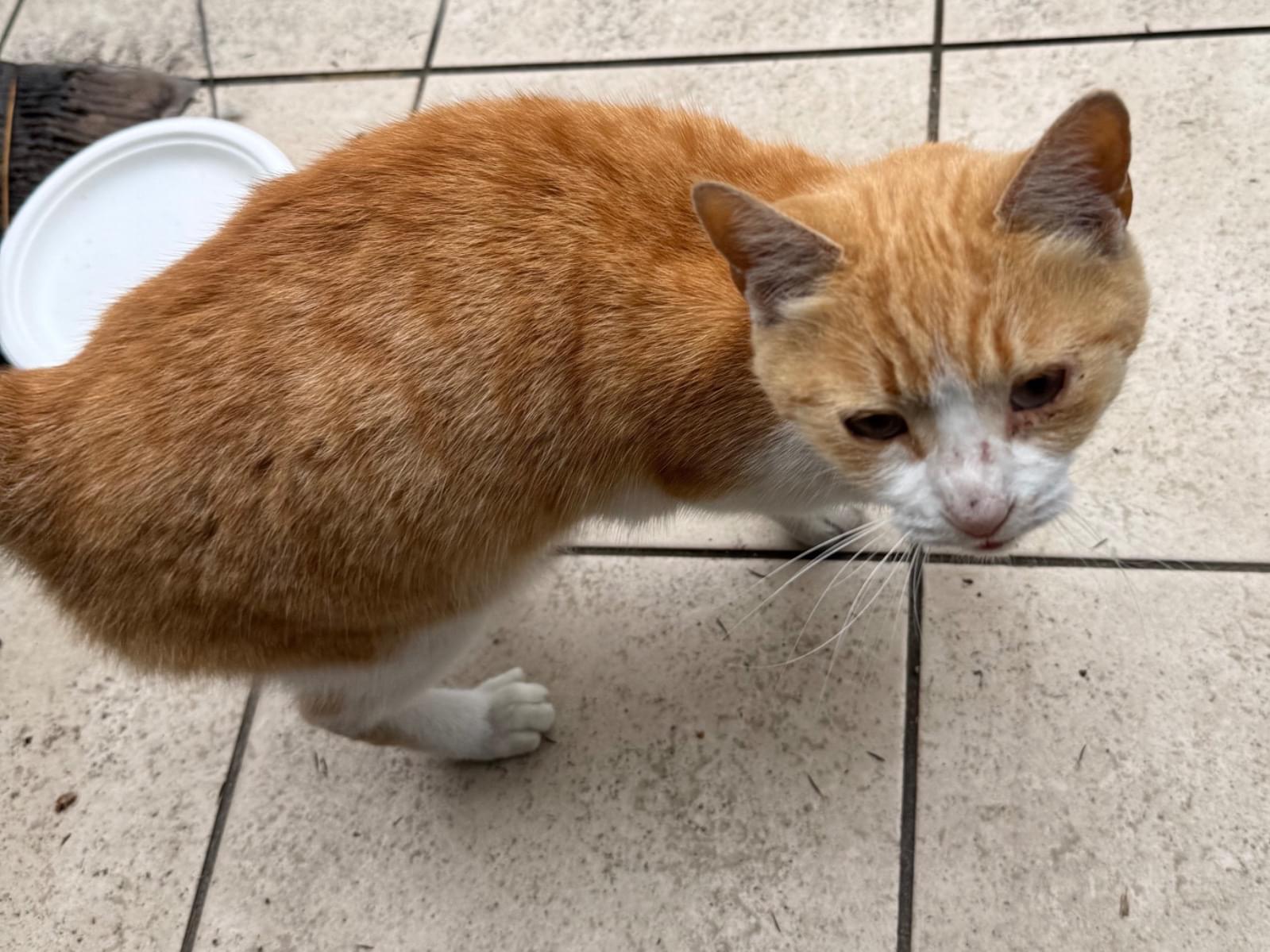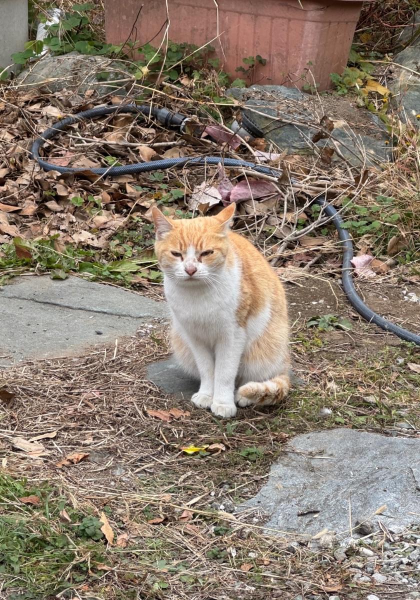 とても人懐っこく、人間を見るとニャーニャー言って寄ってくるので、飼われていた子ではないかと思います。愛猫ちゃんやかわいがっていた子がいなくなったひと、心当たりありませんか?まだ若い子だと思います。