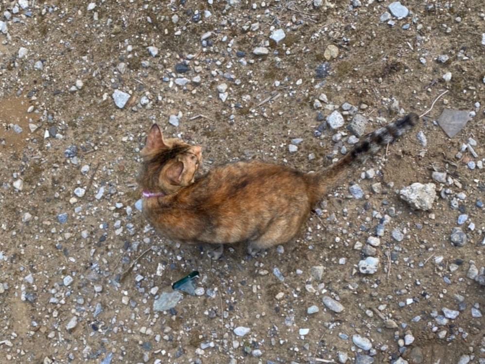 猫に詳しく無いので種類が分かりませんが、ピンクと白の首輪をつけた茶色の小柄なとても人懐っこい猫ちゃんをアパートの駐車場で目撃しました。何日間か目撃しています、先住犬がおり保護できません…飼い主が見つかりますように。