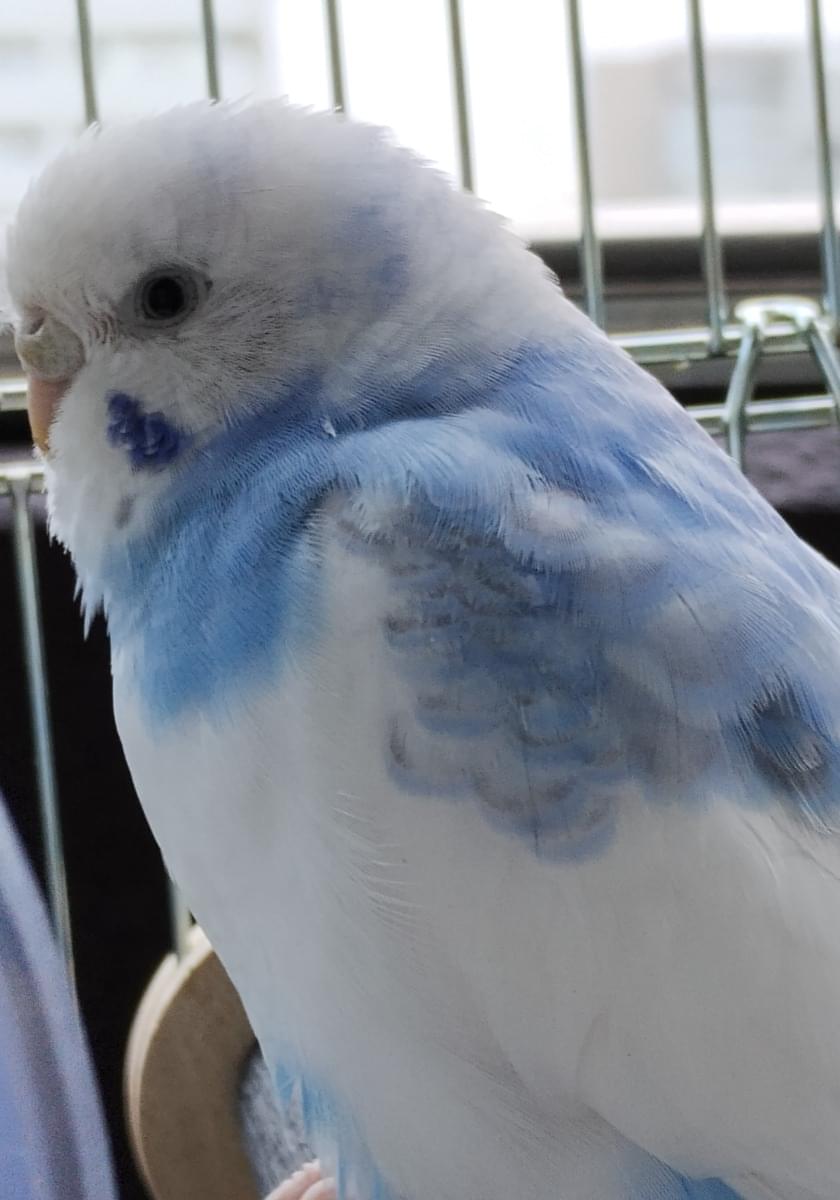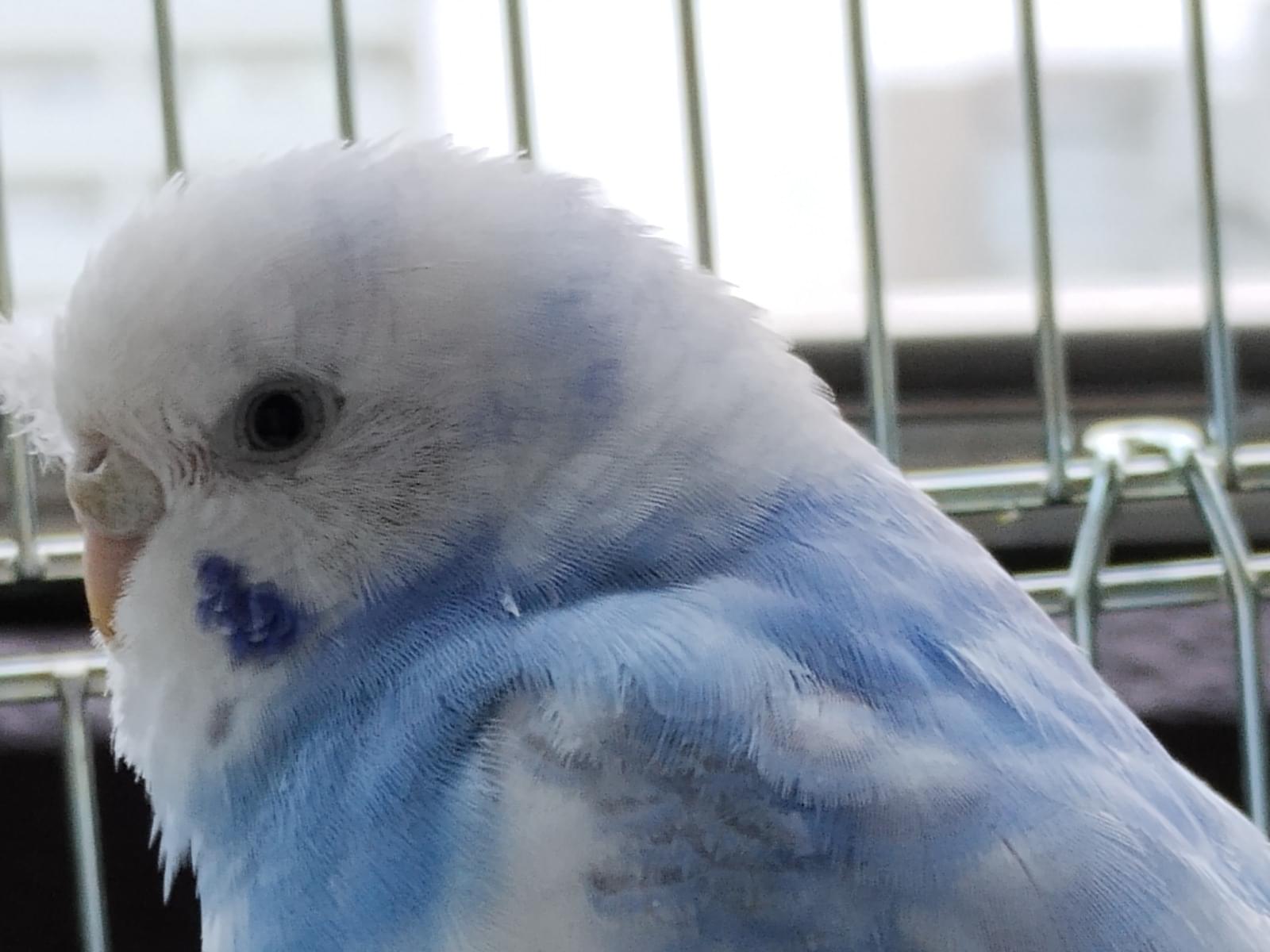現在、換羽期で、写真より頭に羽軸が出ています。