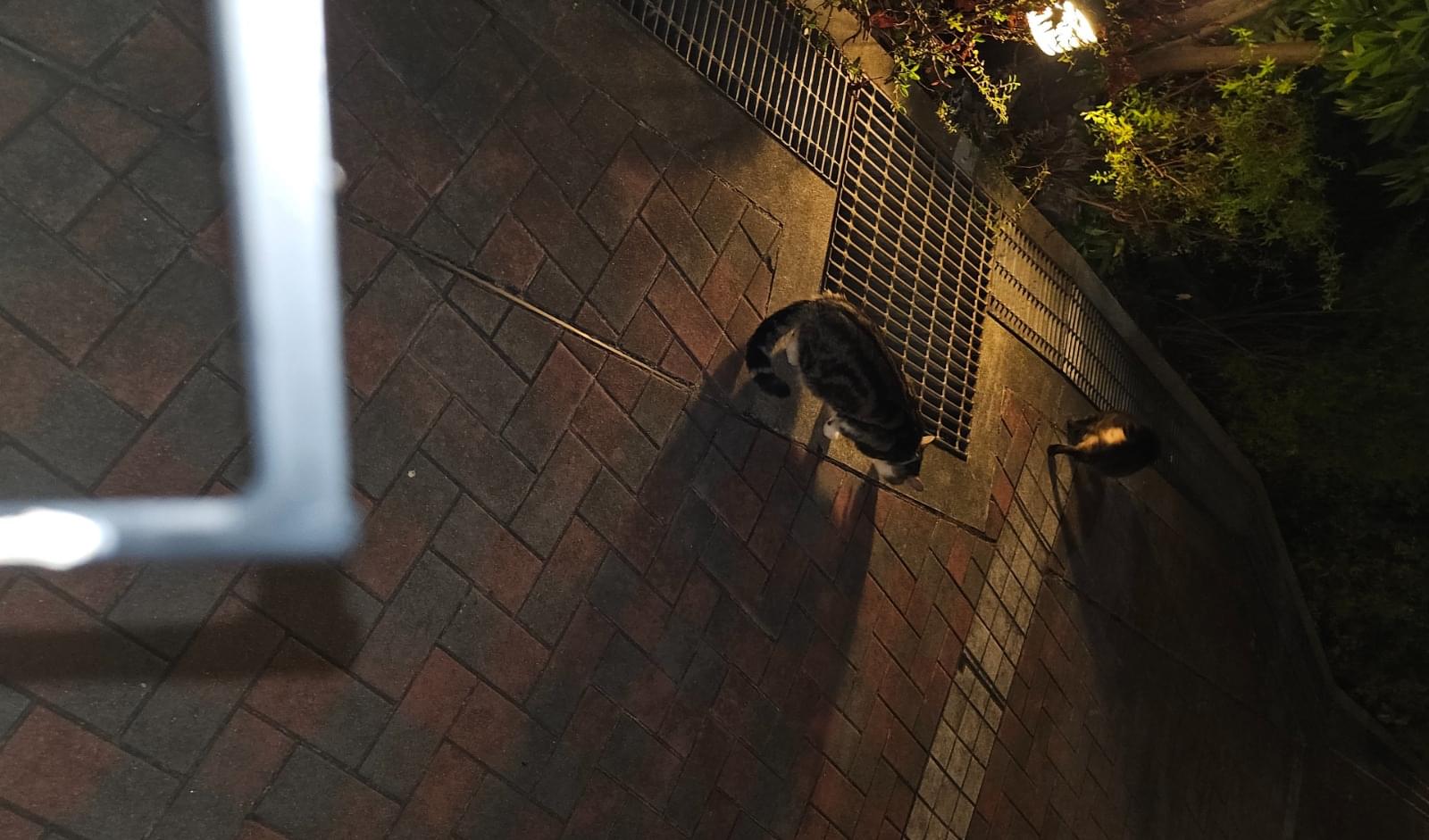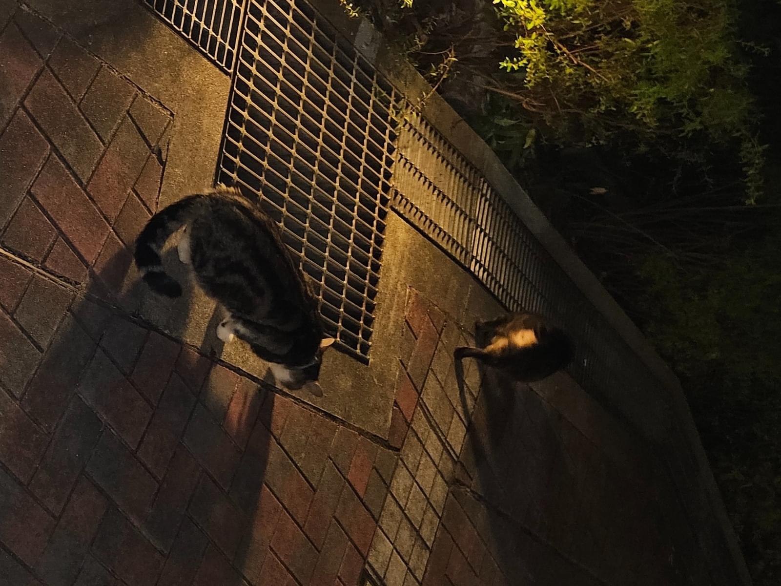 比較的人懐こかったです。1匹おおきな猫ちゃん(野良?)と一緒にいました。