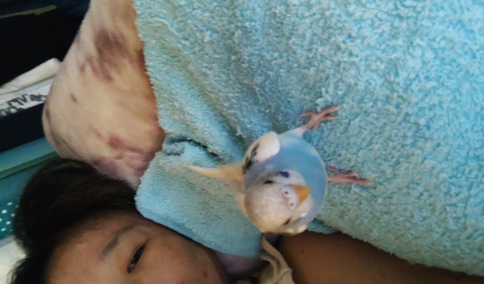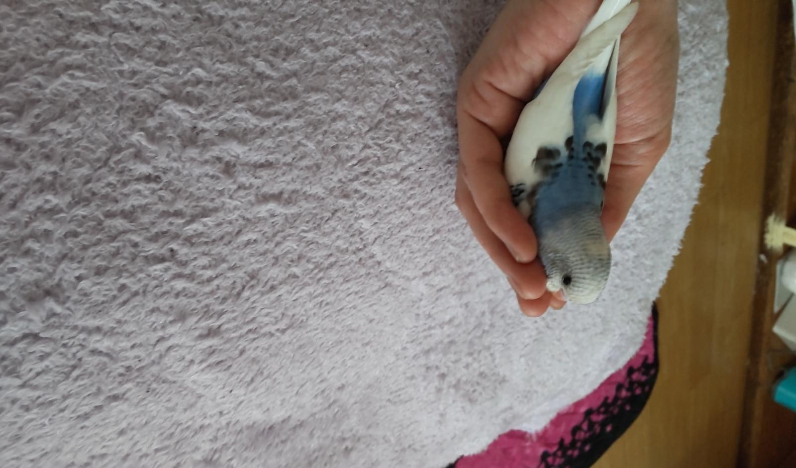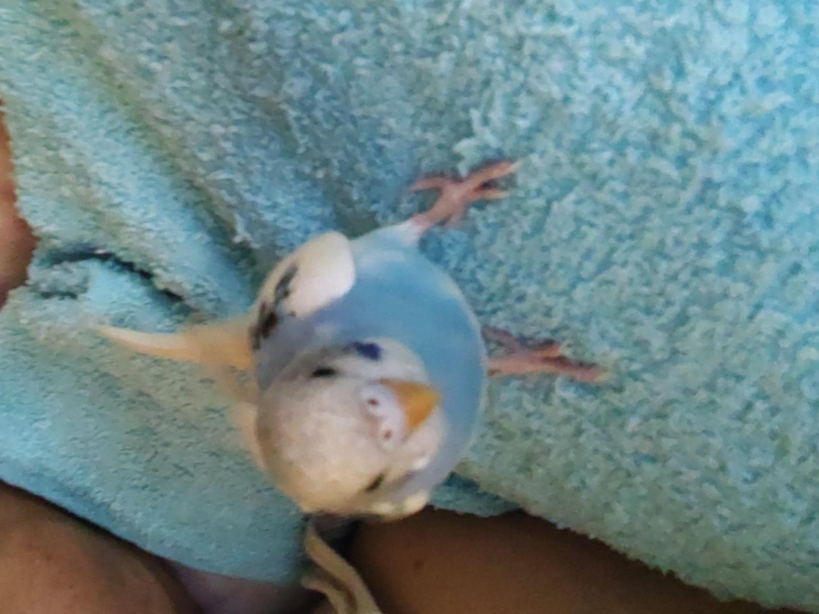 白と水色の綺麗で可愛いセキセイインコのテンテンです。
