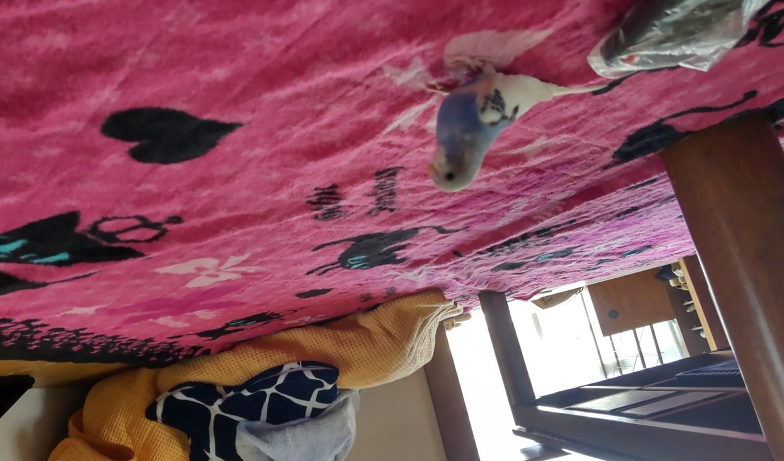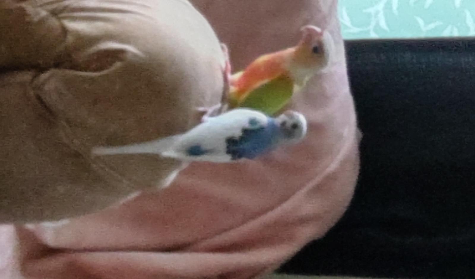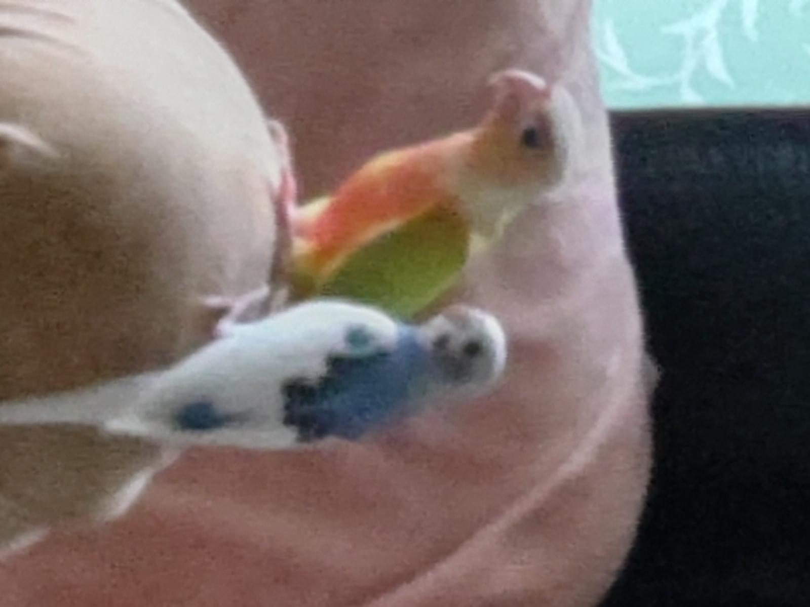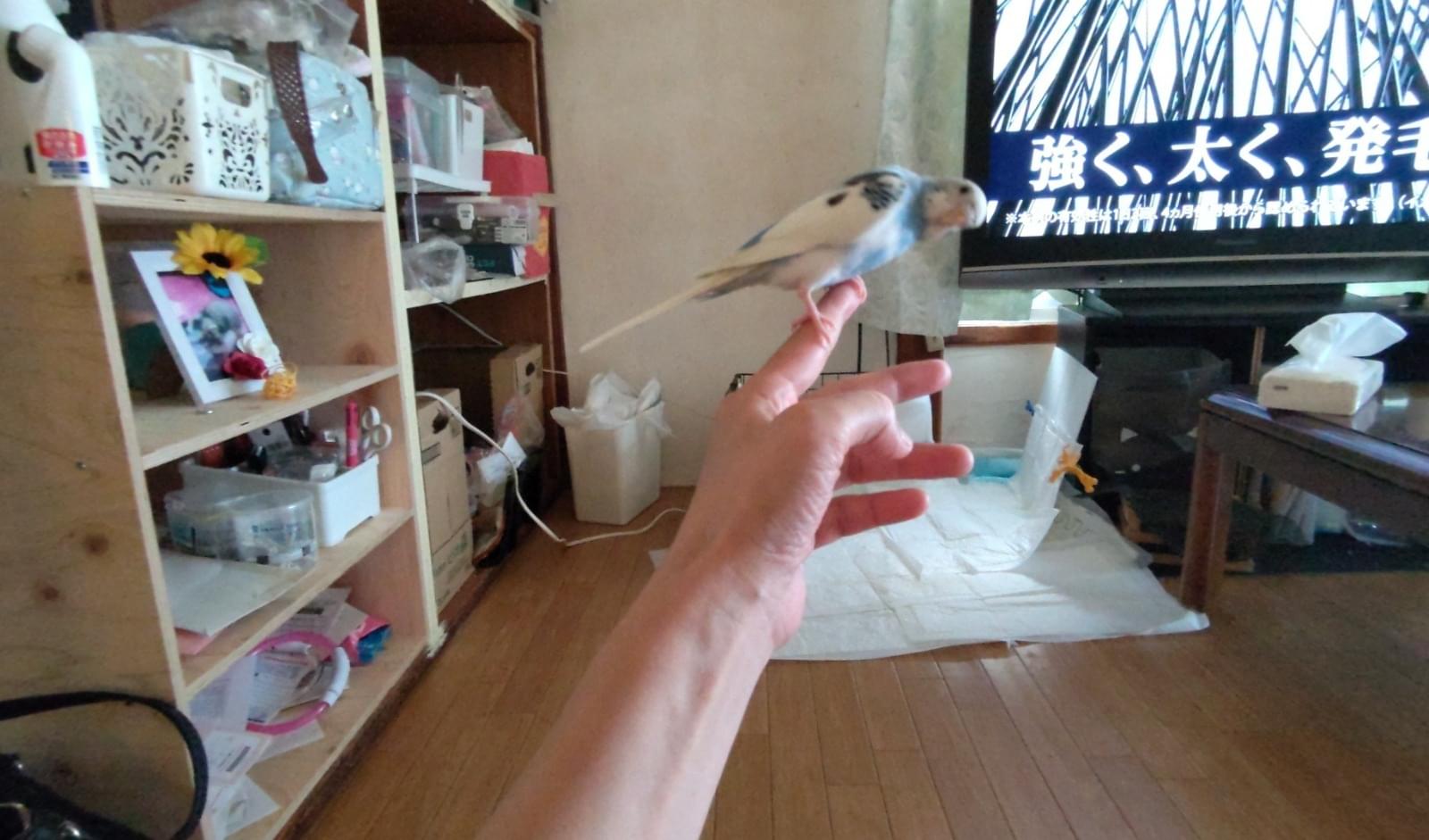 白と水色の綺麗で可愛いセキセイインコのテンテンです。