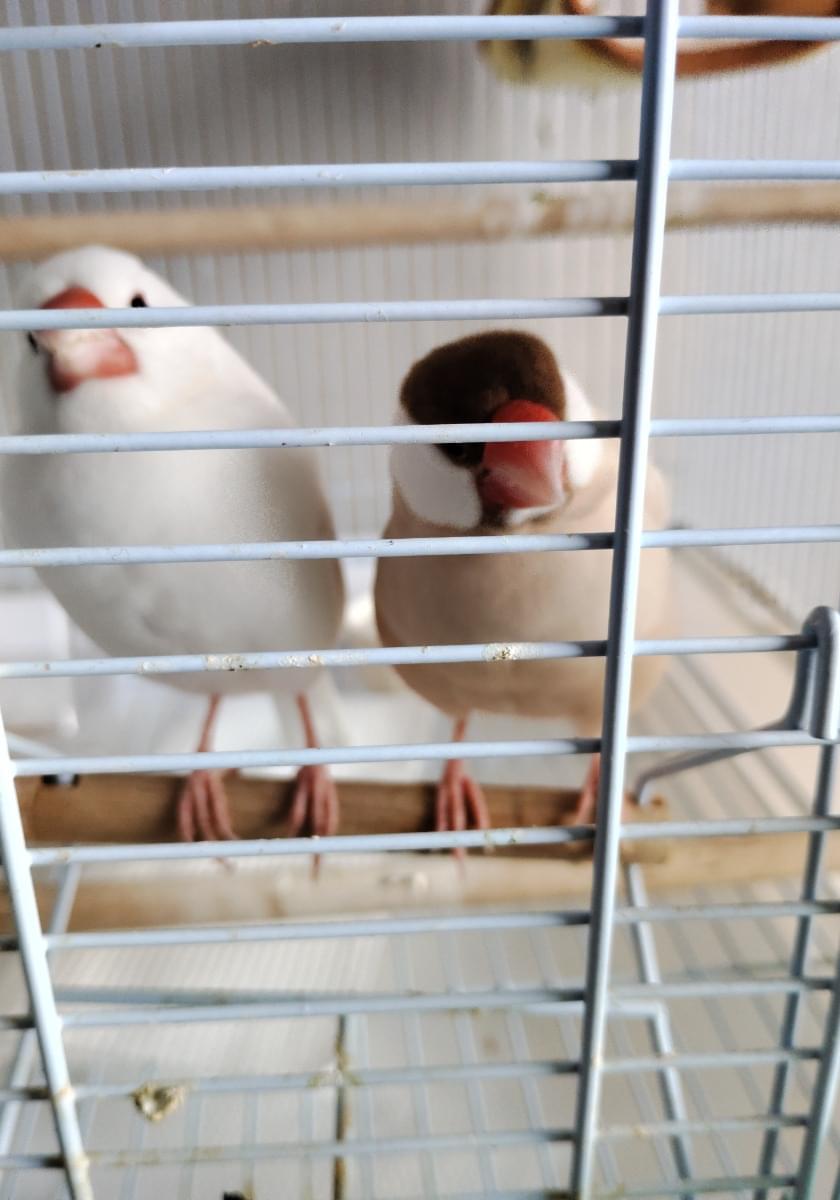 白は活発で、声が大きくて高く、シナモン文鳥はおっとり、小さめのくぐもった声です。
