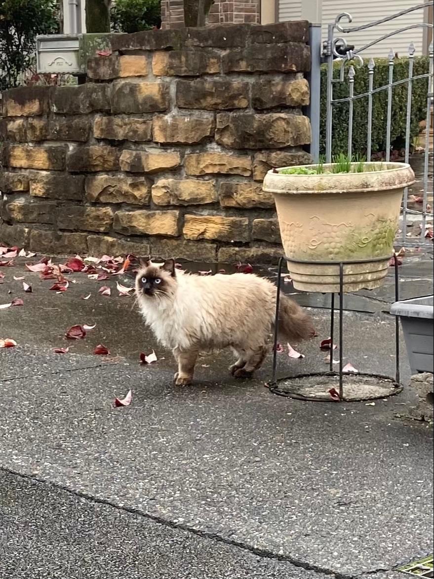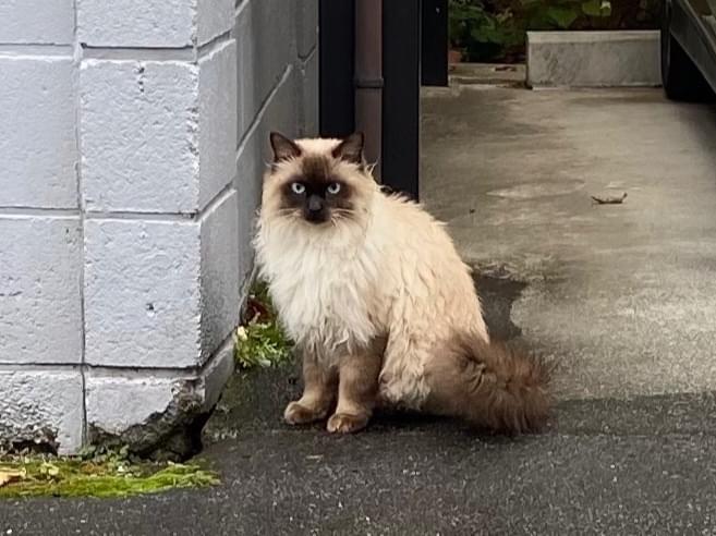 おっとりしていて、一瞬こちらに着いてこようとするなどなんとなく人間に慣れている猫さんかなあと感じました。