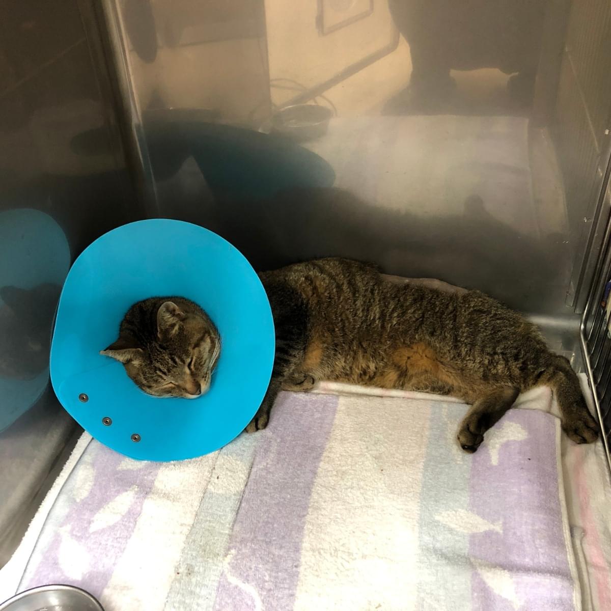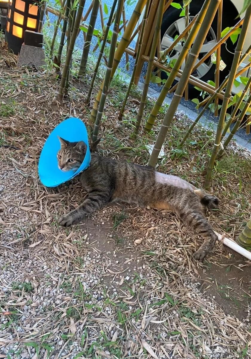 腰の部分が手術のため、毛が刈られています。