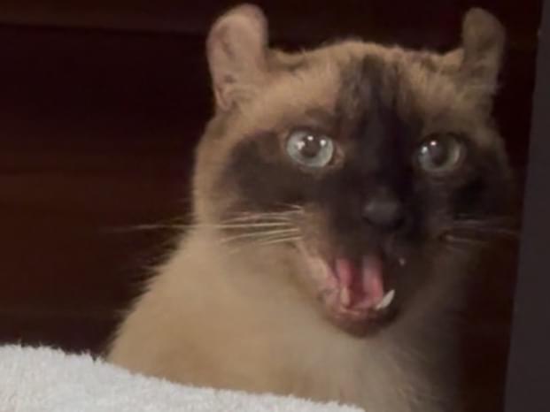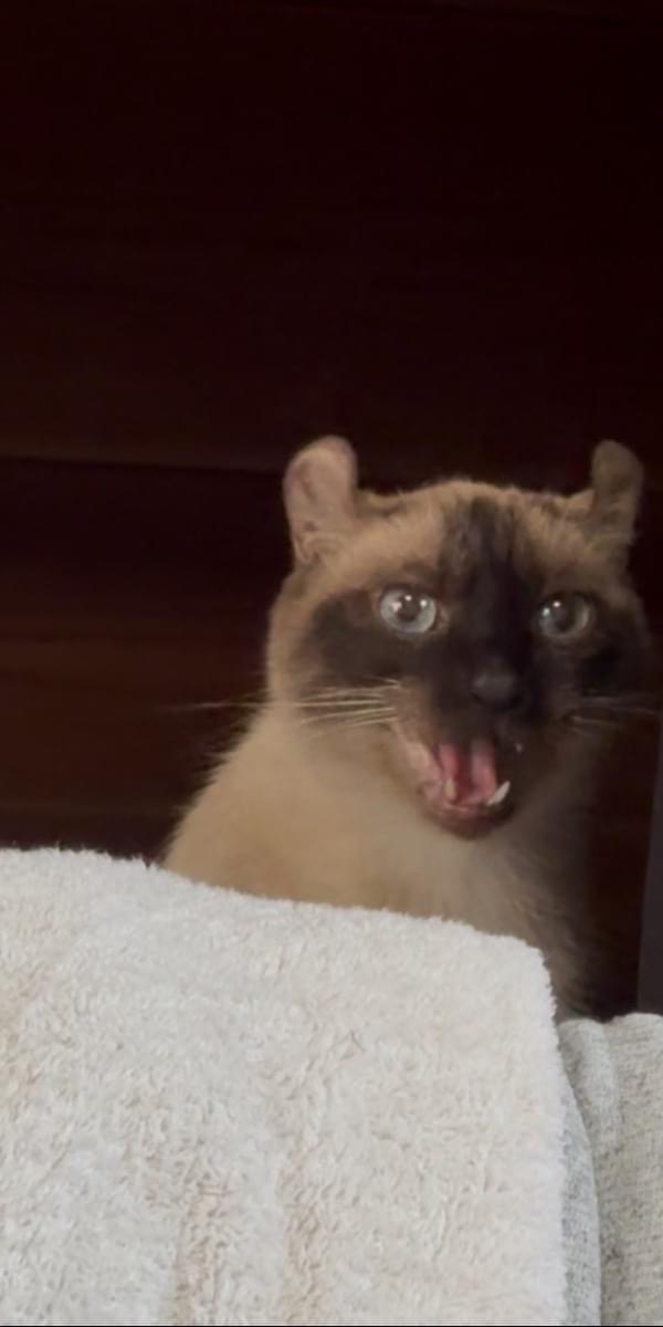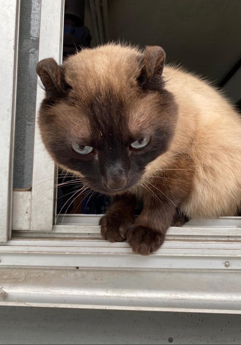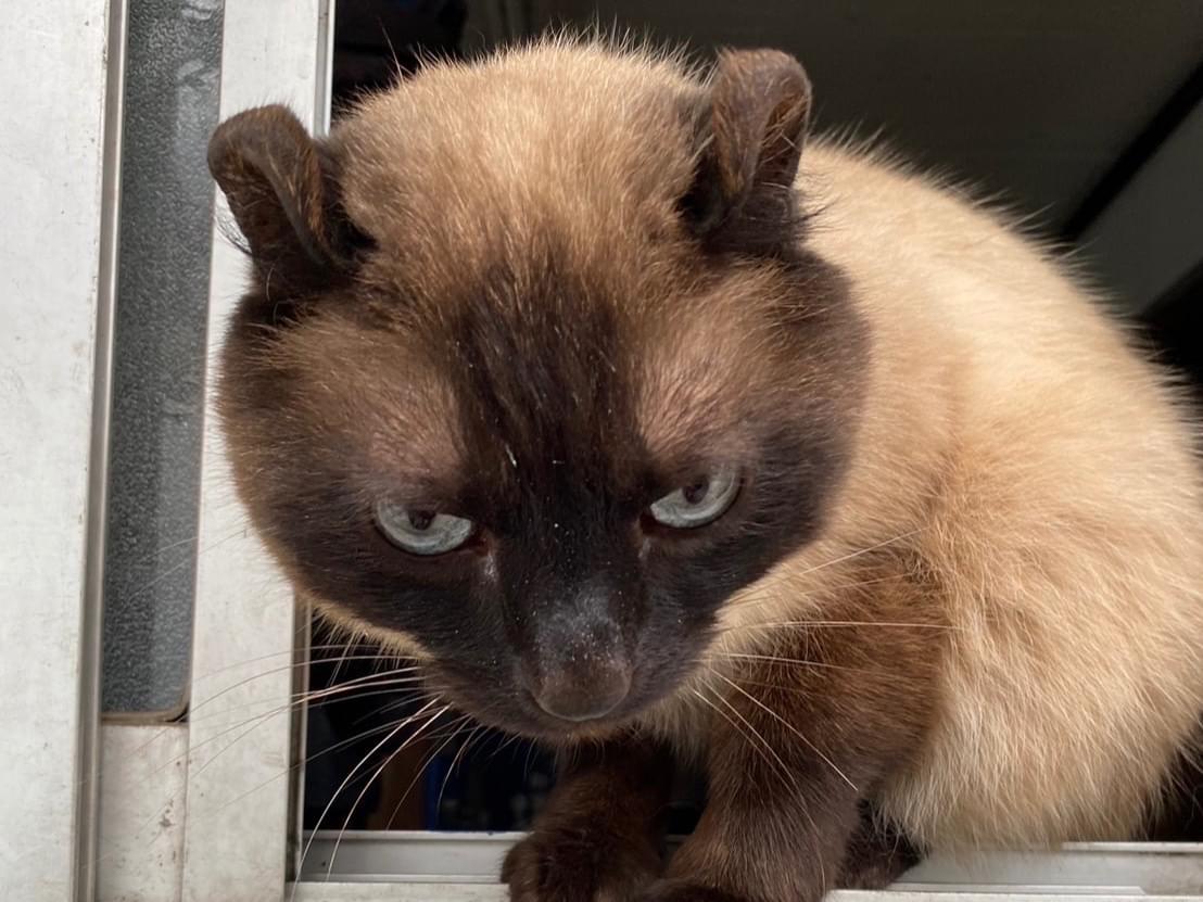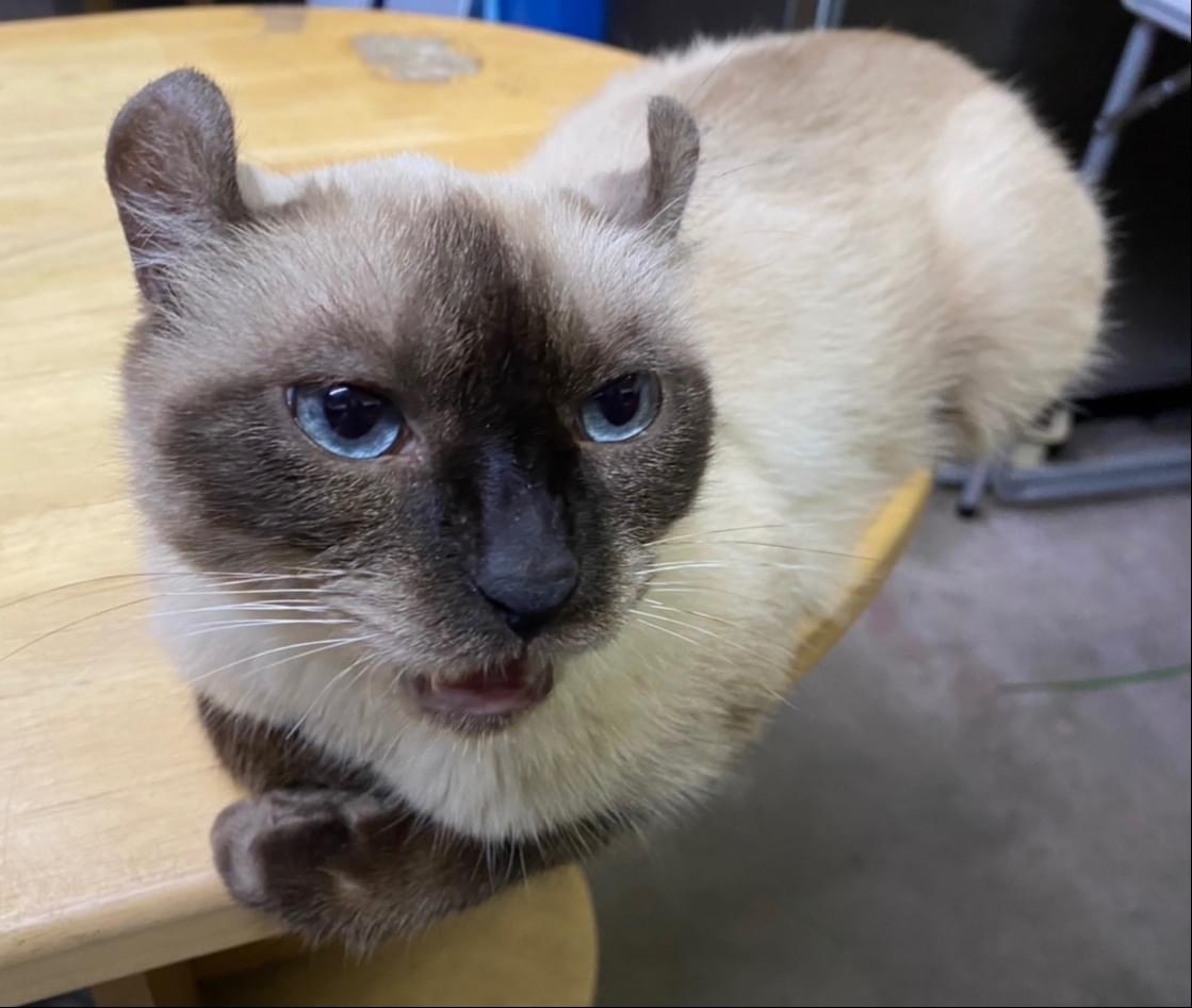 毛色は、ベージュと黒(焦茶)のシールポイントで、顔、尻尾、耳、手足が黒、胴体、頭などはベージュです。