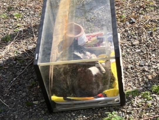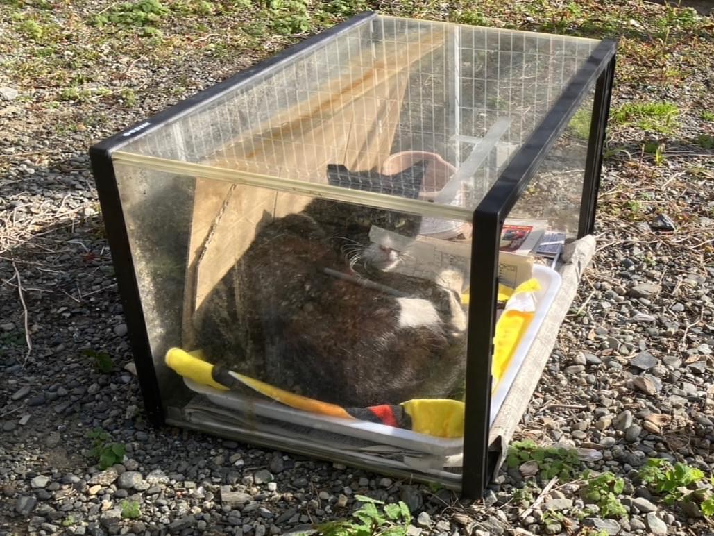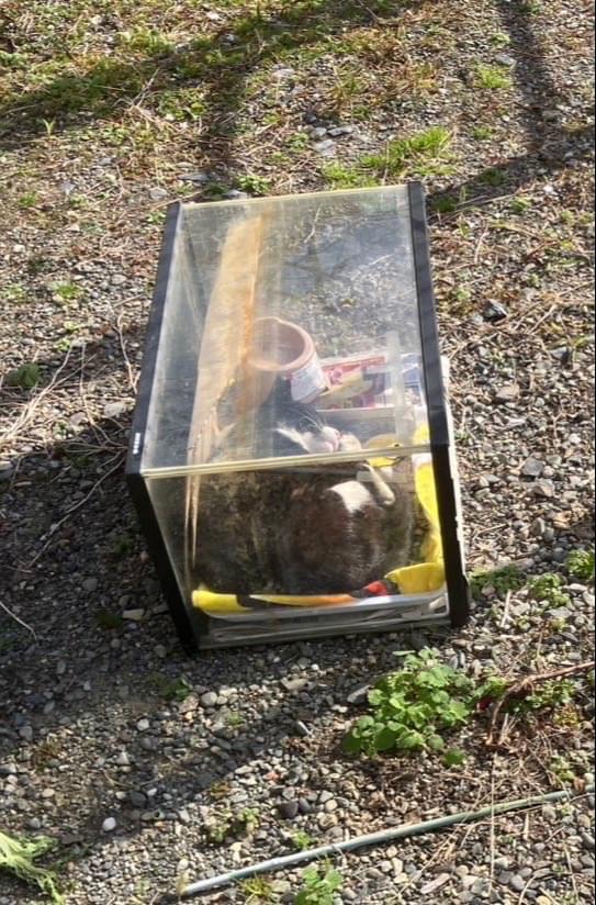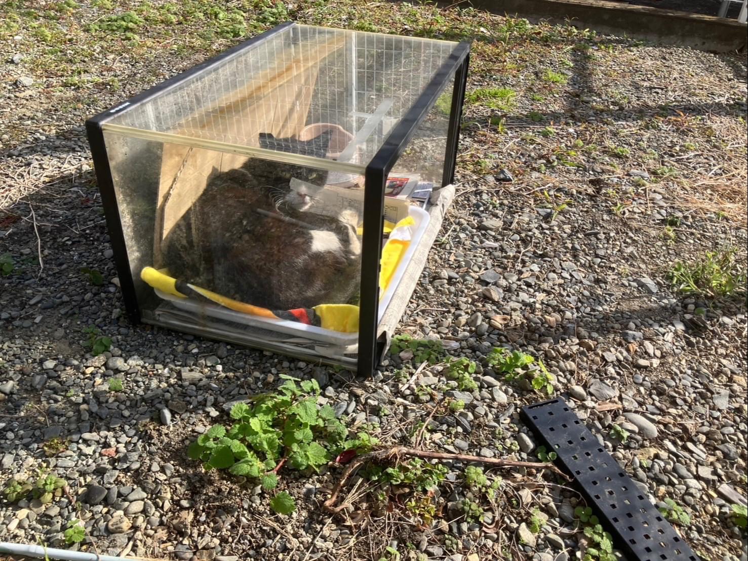 • 我が家の庭に処分予定の90cm水槽を置いていたのですがその水槽を雨風避けにしている様子