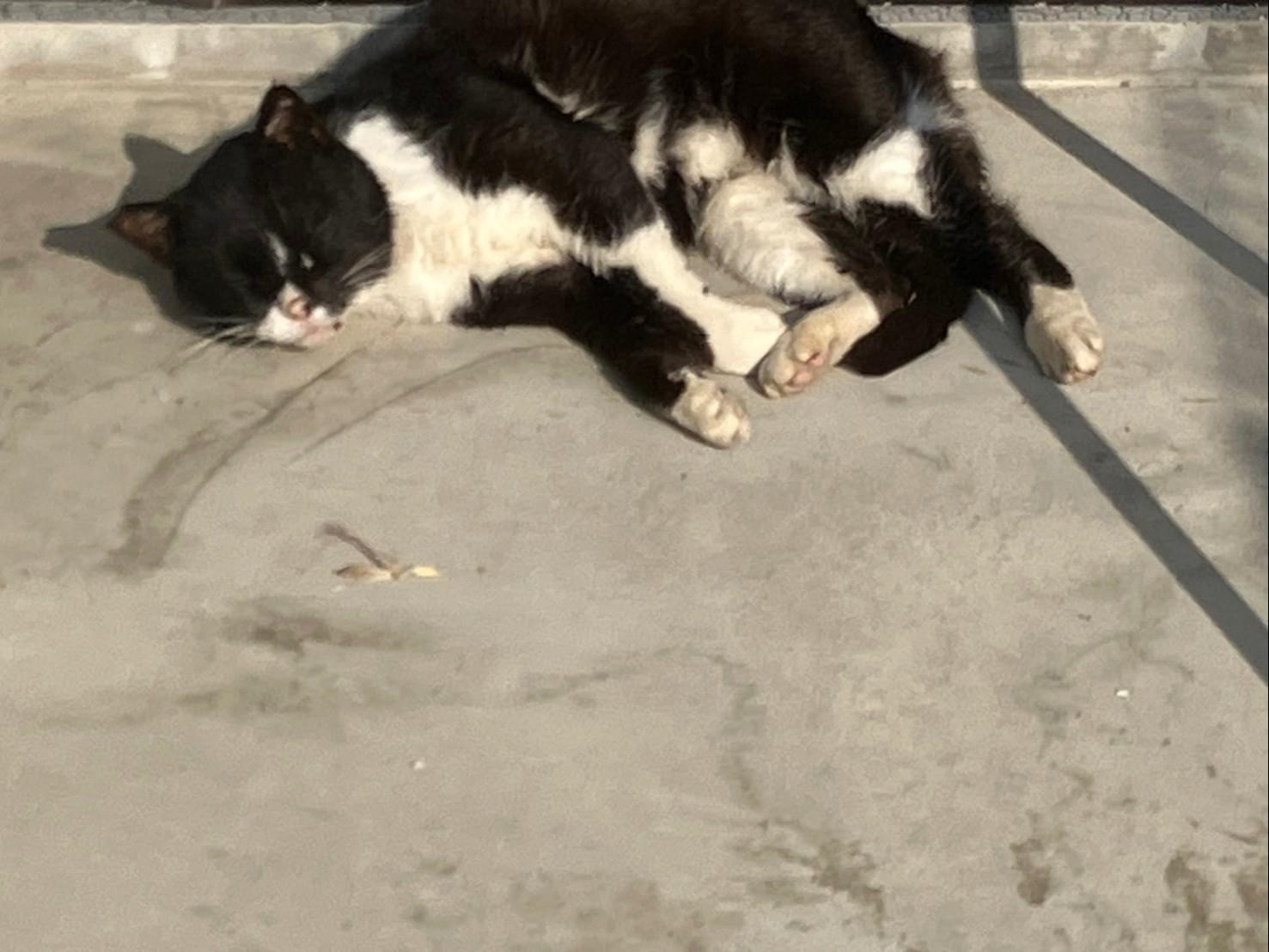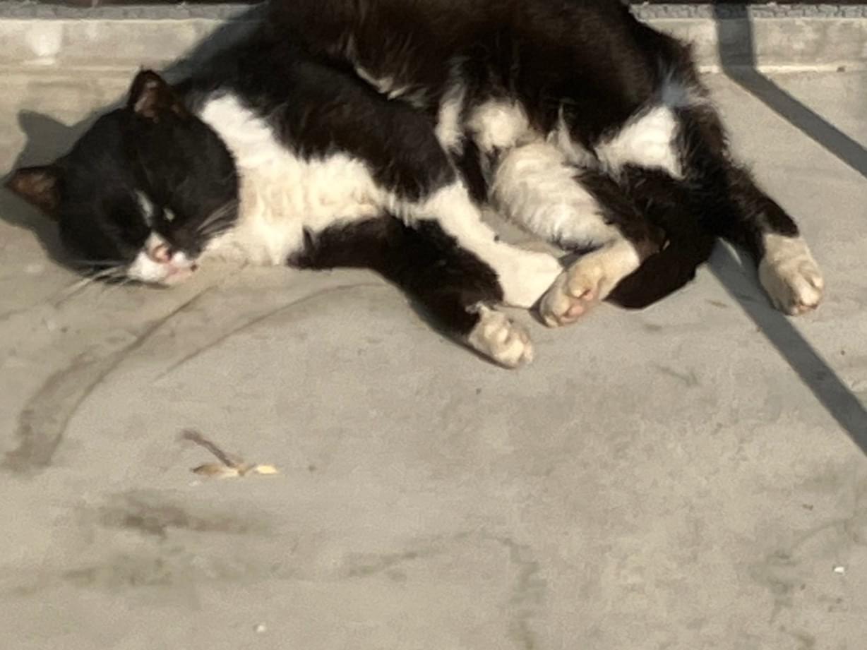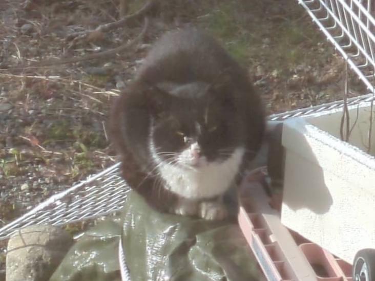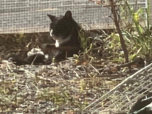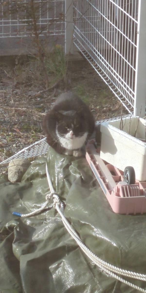 うちの庭に最近、白黒のハチワレの猫さんが遊びに来るようになりました。