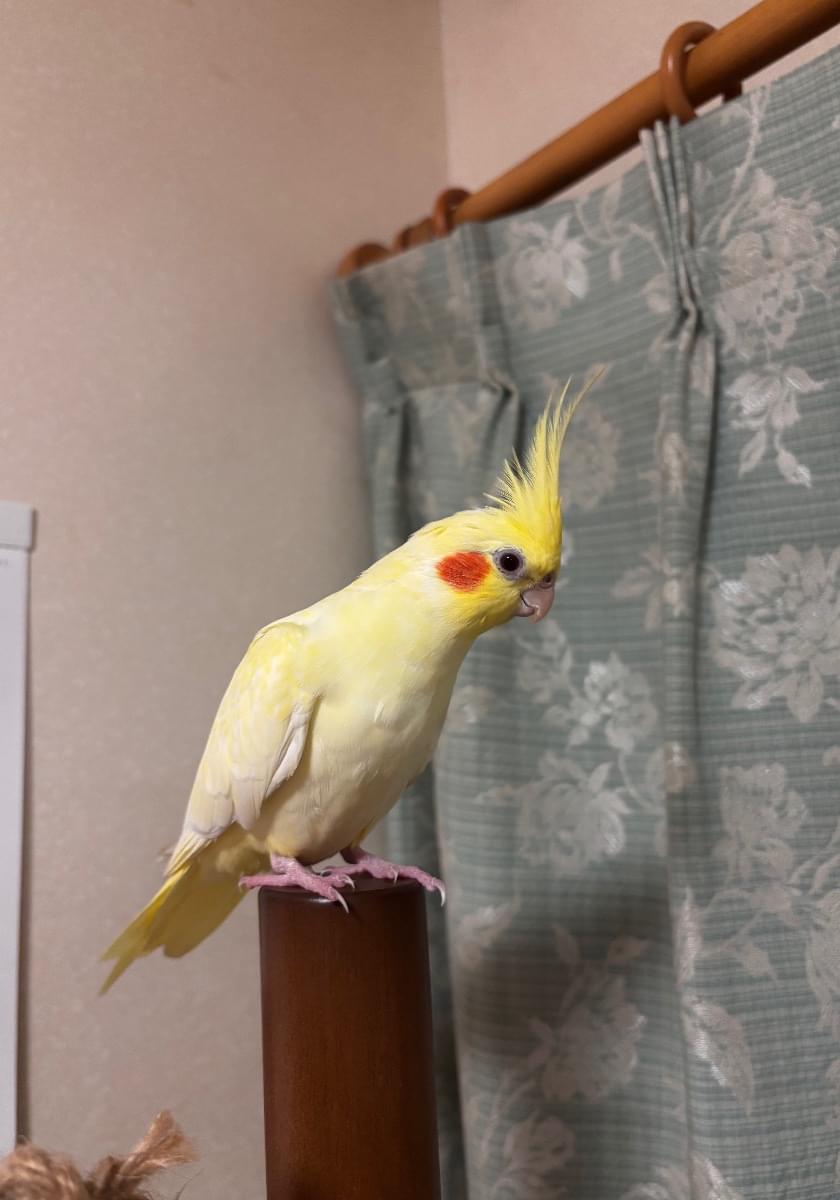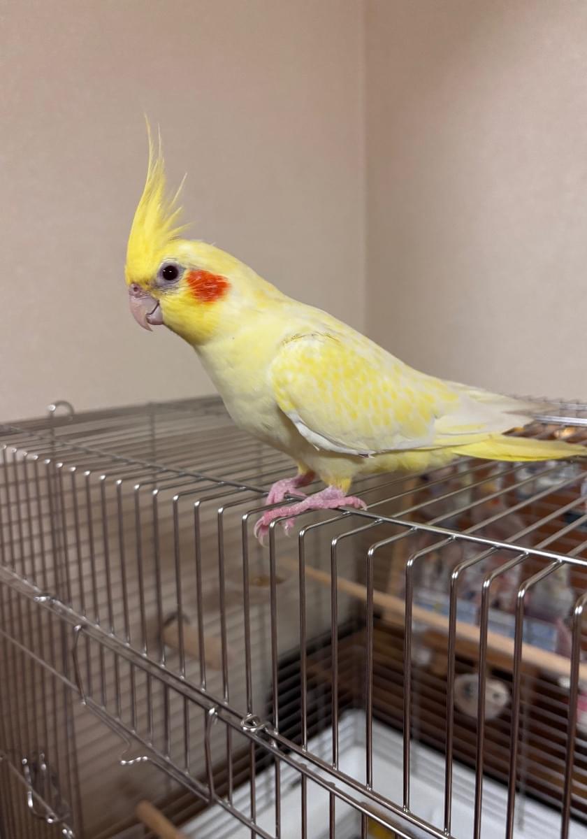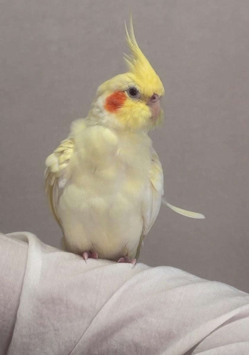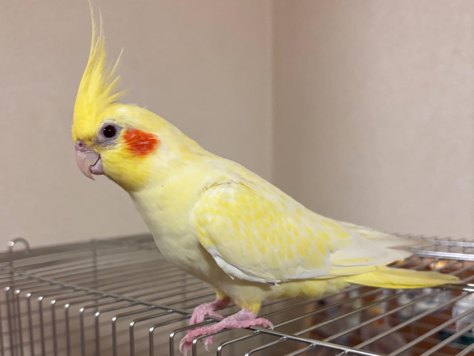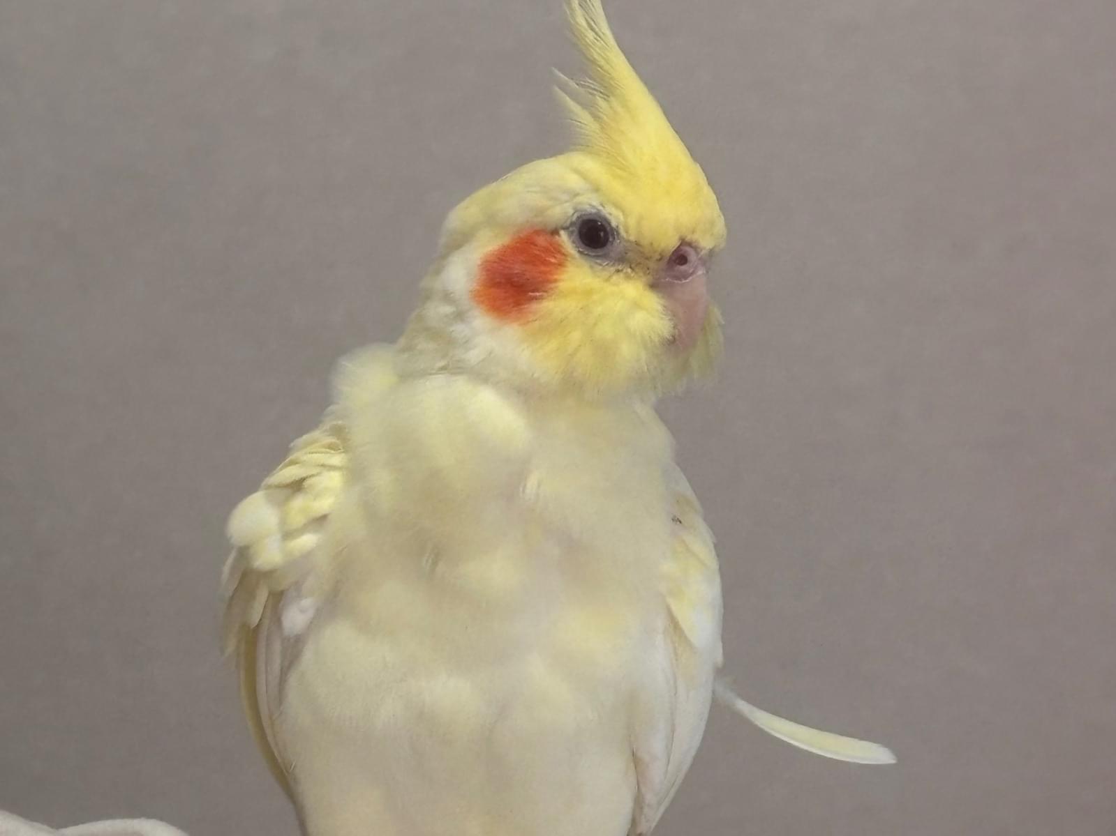 頭、しっぽが黄色く体は少し白が混じっているオカメインコを探しています