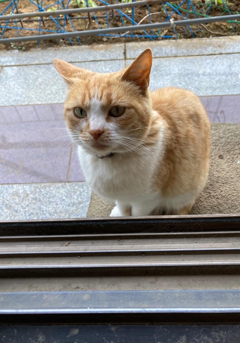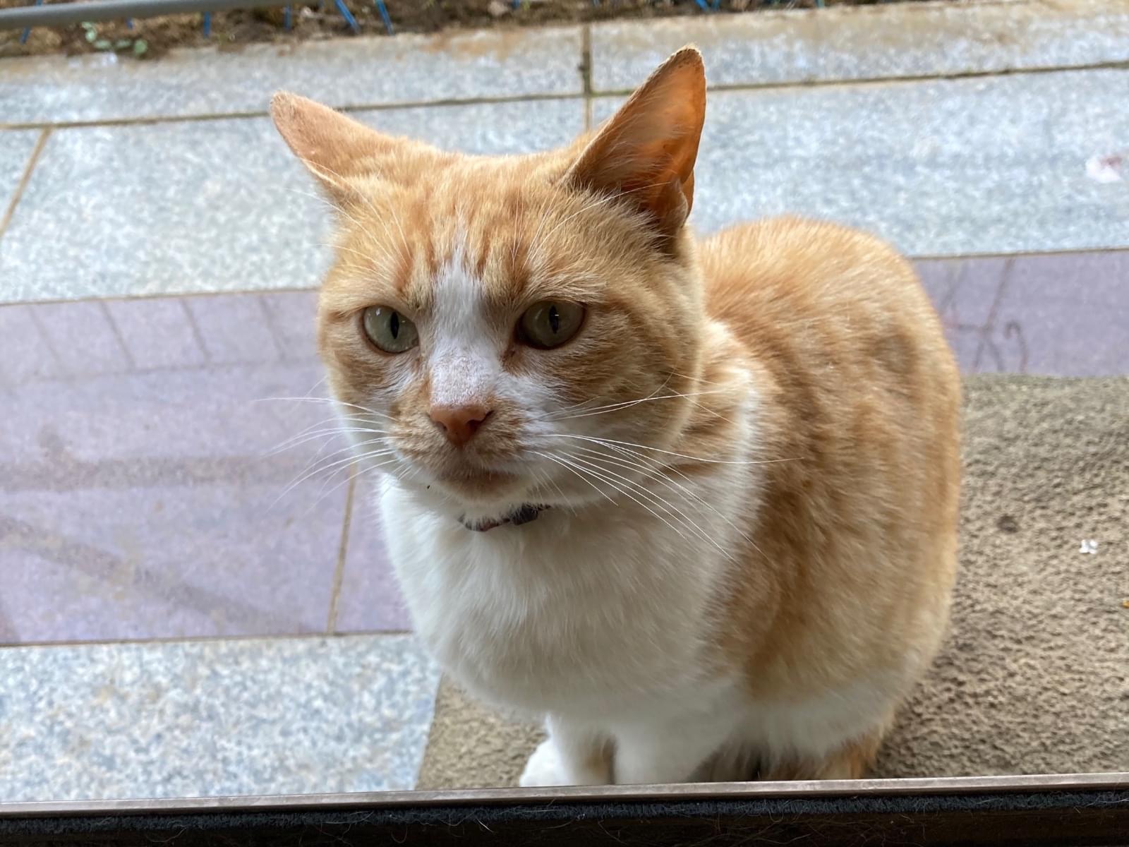 特徴:茶白、メス猫、赤色にチェック柄の首輪をしています(外れている可能性があります)