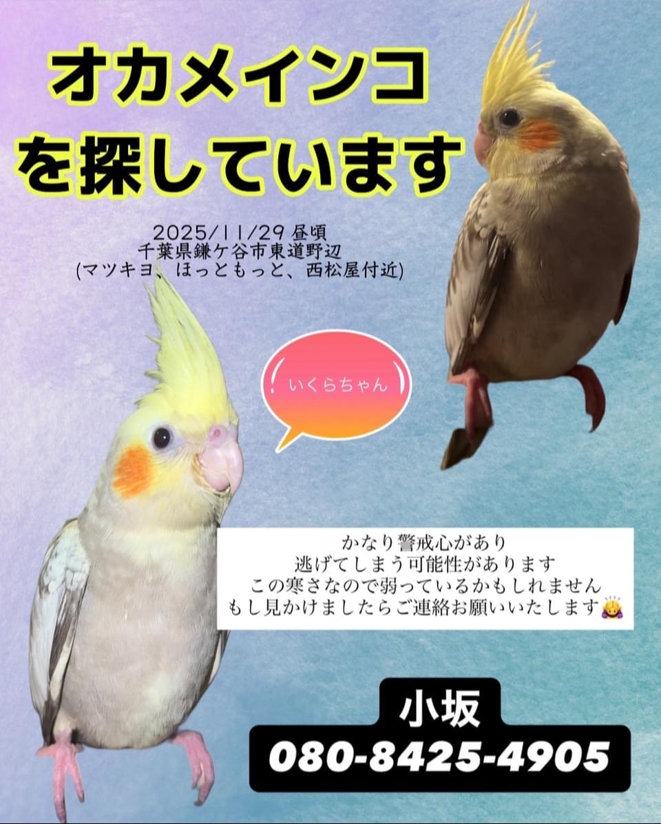 保護して頂けたらすぐご連絡ください。