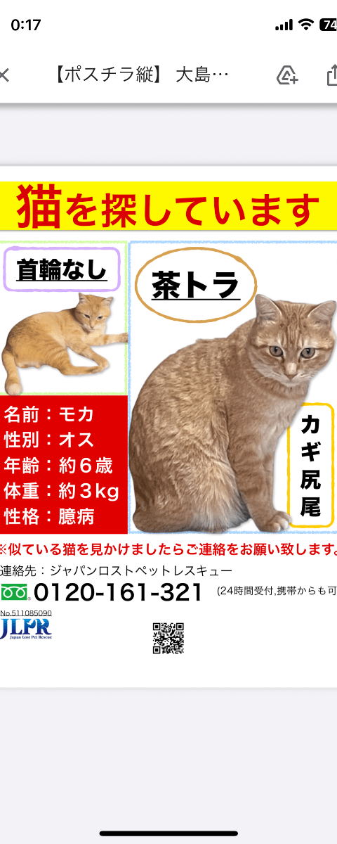 目撃情報、家に来ている、保護している等、情報がありましたらご連絡をよろしくお願い致します