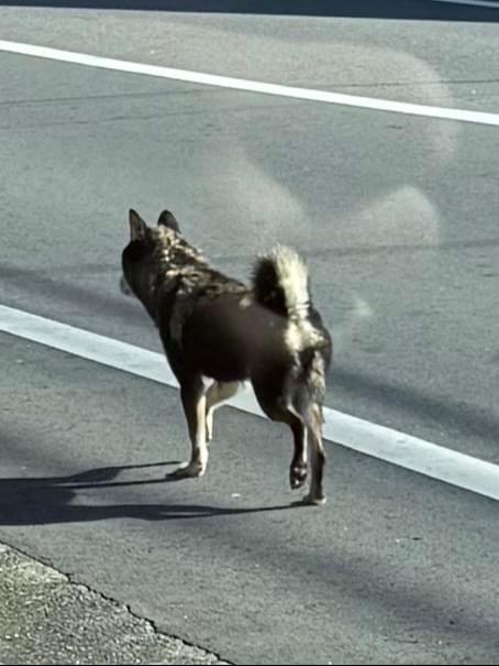 迷子と思われる黒い柴犬を目撃しました。車通りの多い道をよろよろと歩いておりました。怪我などはなさそうです。