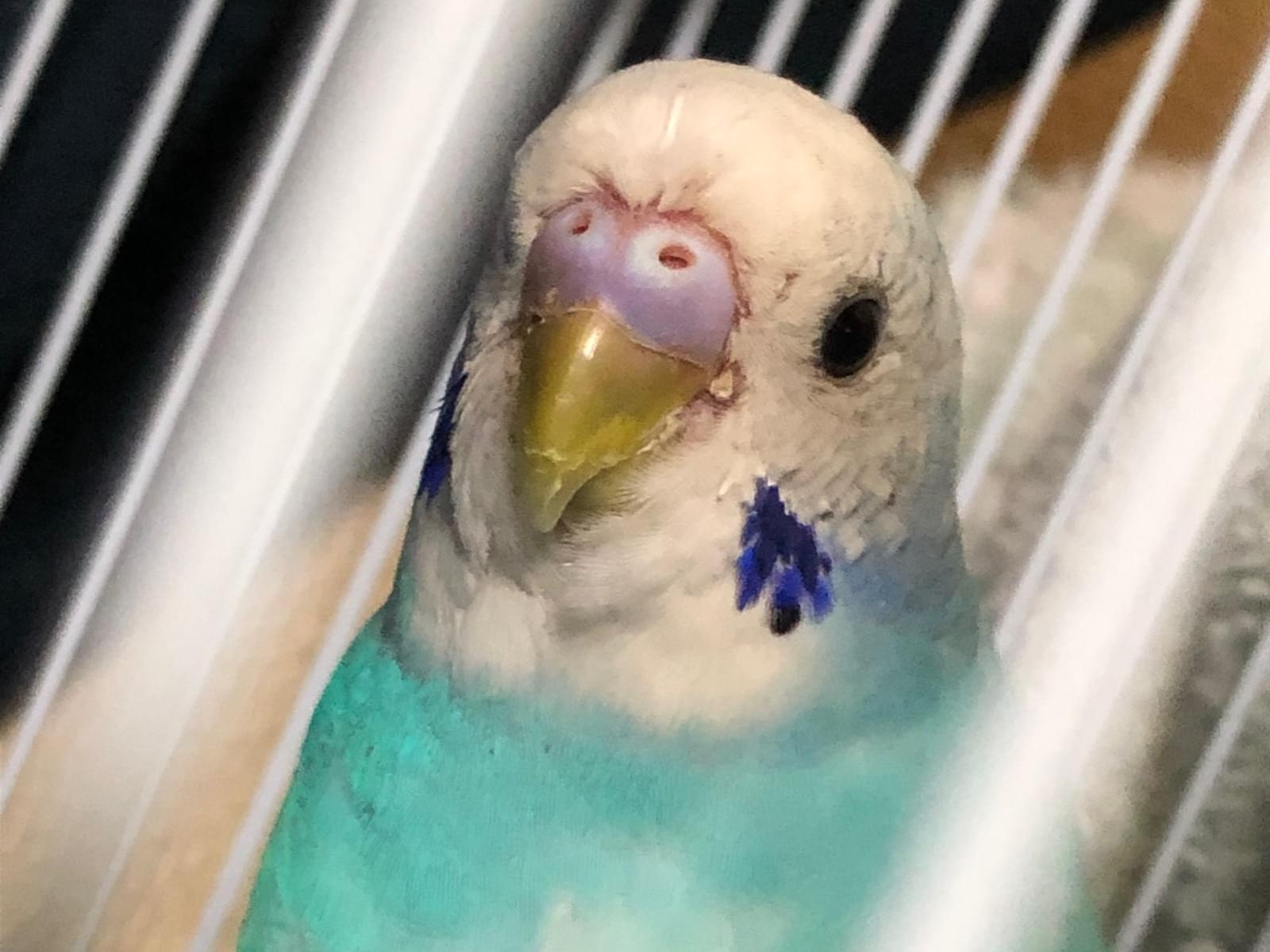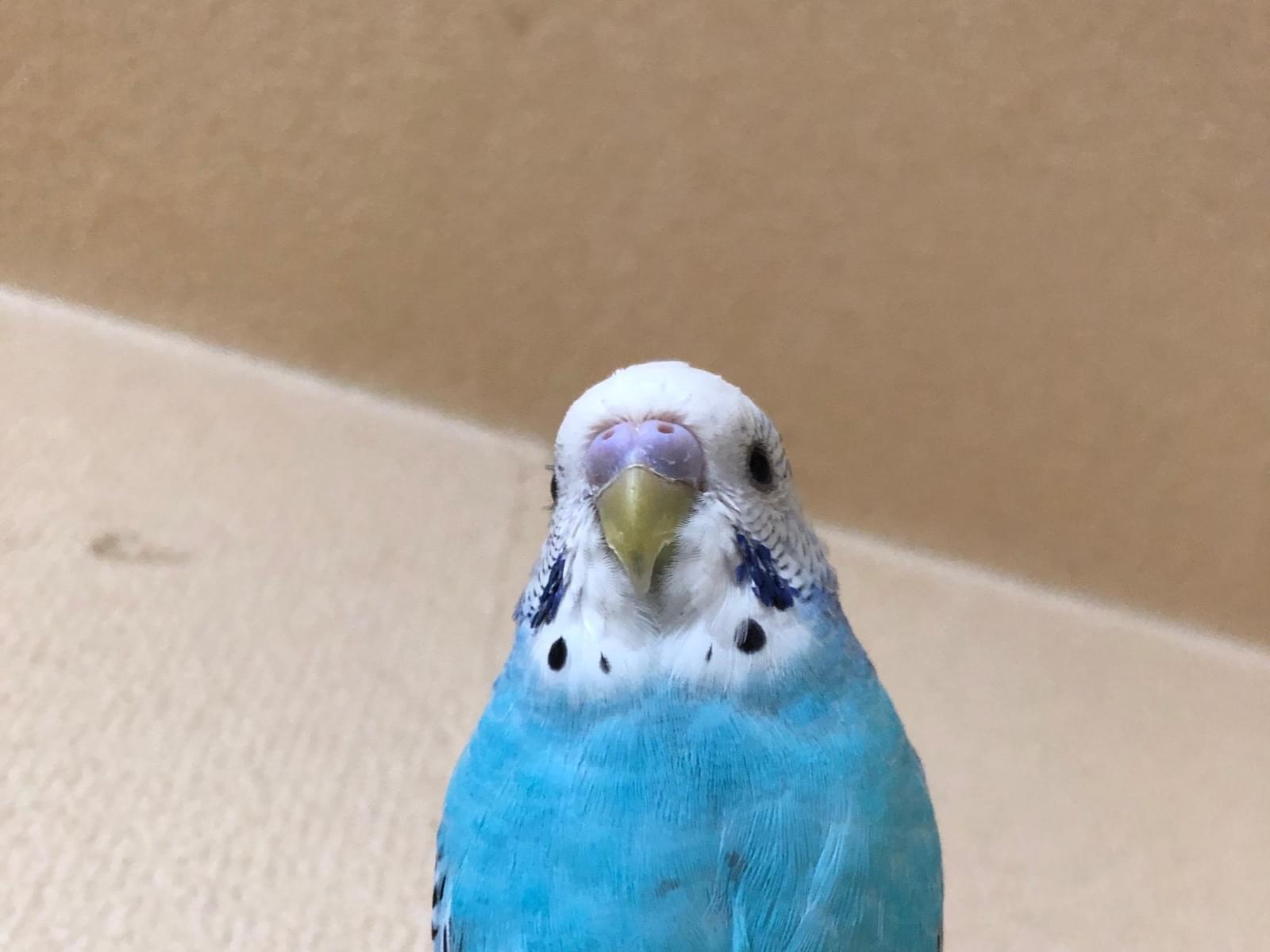 目が全体的に目が黒い青色のセキセイインコを探しています