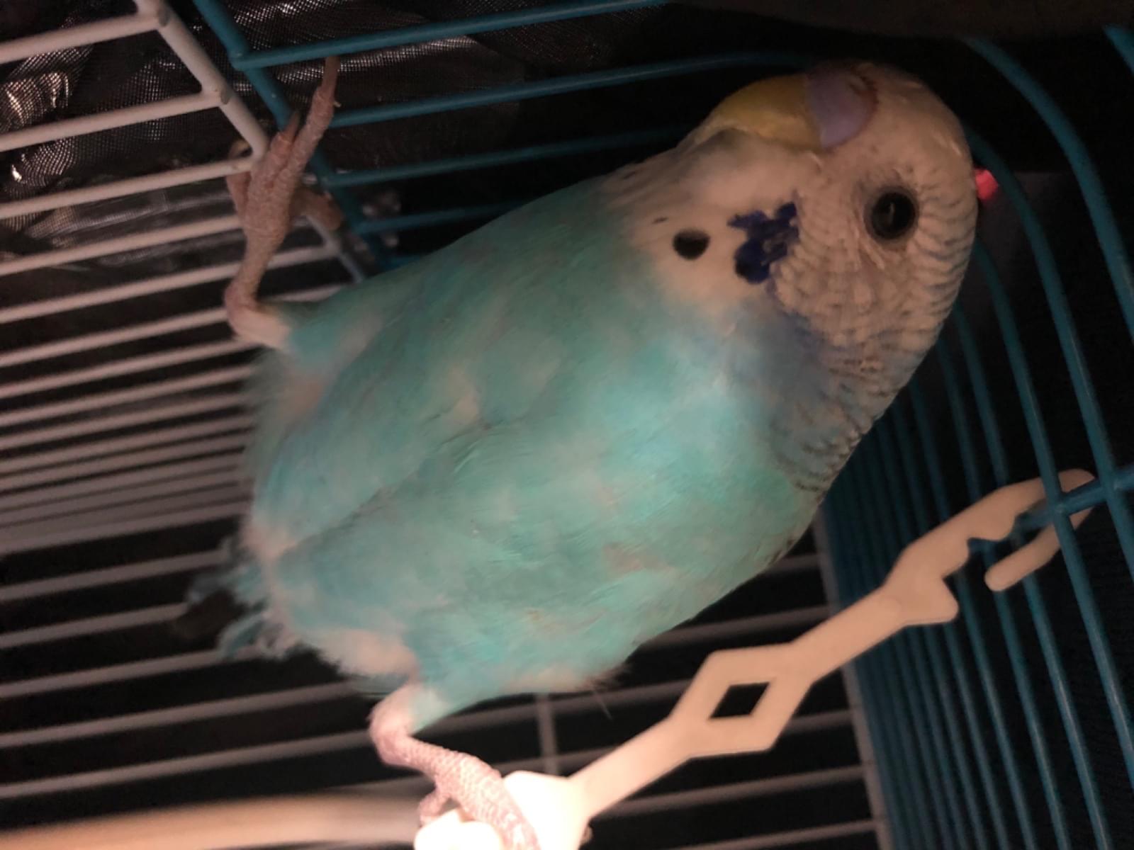 鼻が青っぽいので多分男の子だと思います…まだ赤ちゃん?なので言葉は喋べられないようです…目が全体的に黒いです。鳴き方はヒュイという表現が近いと思います…輪っかのやつを端のほうにつけていると写真にあるようにしてほとんど居ます。