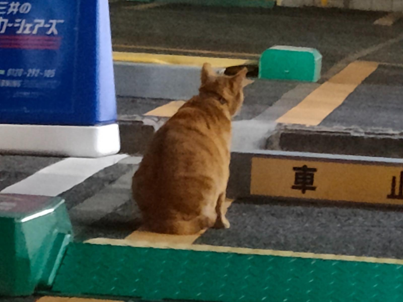 茶トラで鍵しっぽの飼い猫を目撃(唐草模様らしき柄の首輪あり)