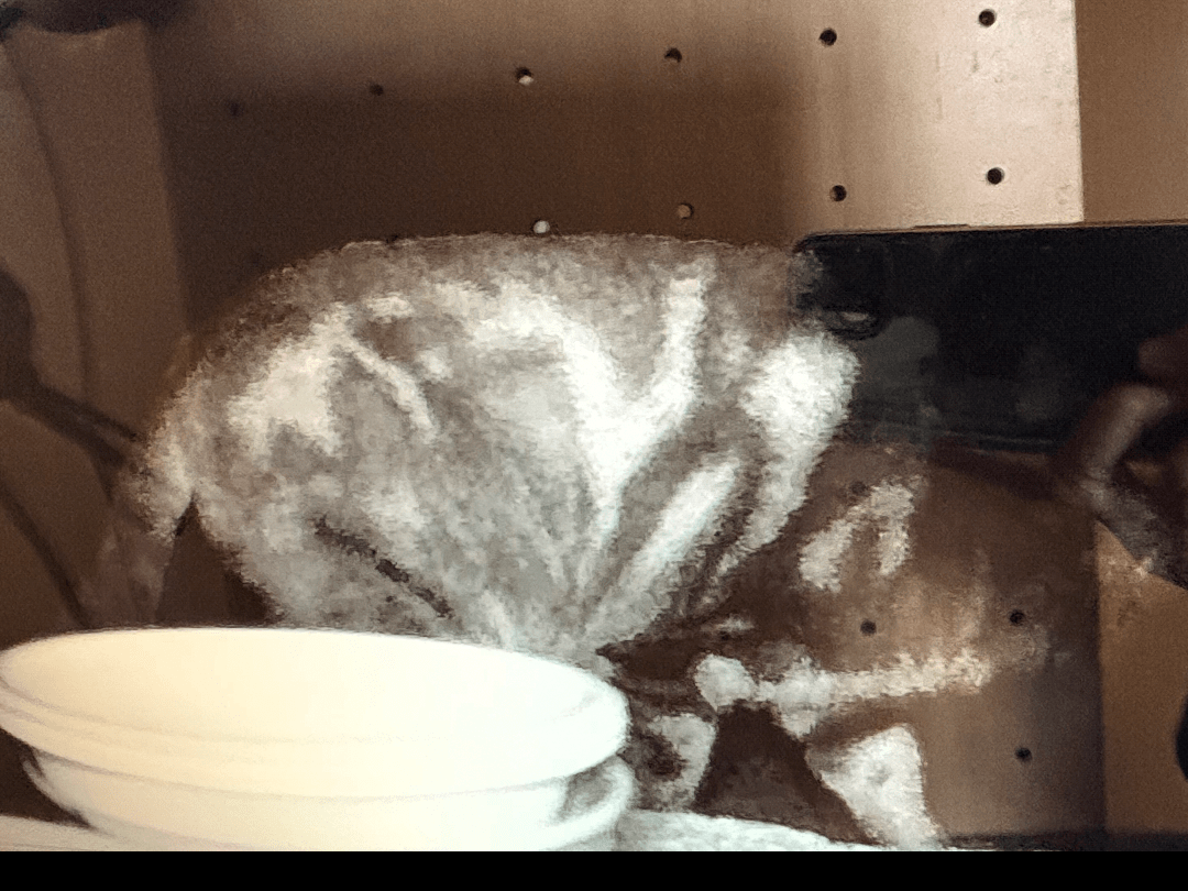 白黒画像なのでグレー系か茶系かは不明ですが、体の模様からアメリカンショートヘアの子のようです。
