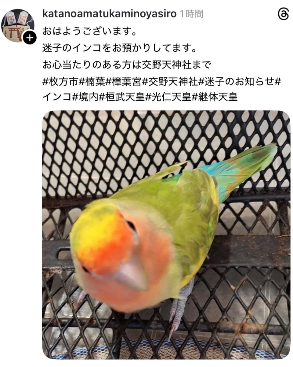 コザクラインコ?が保護されています。