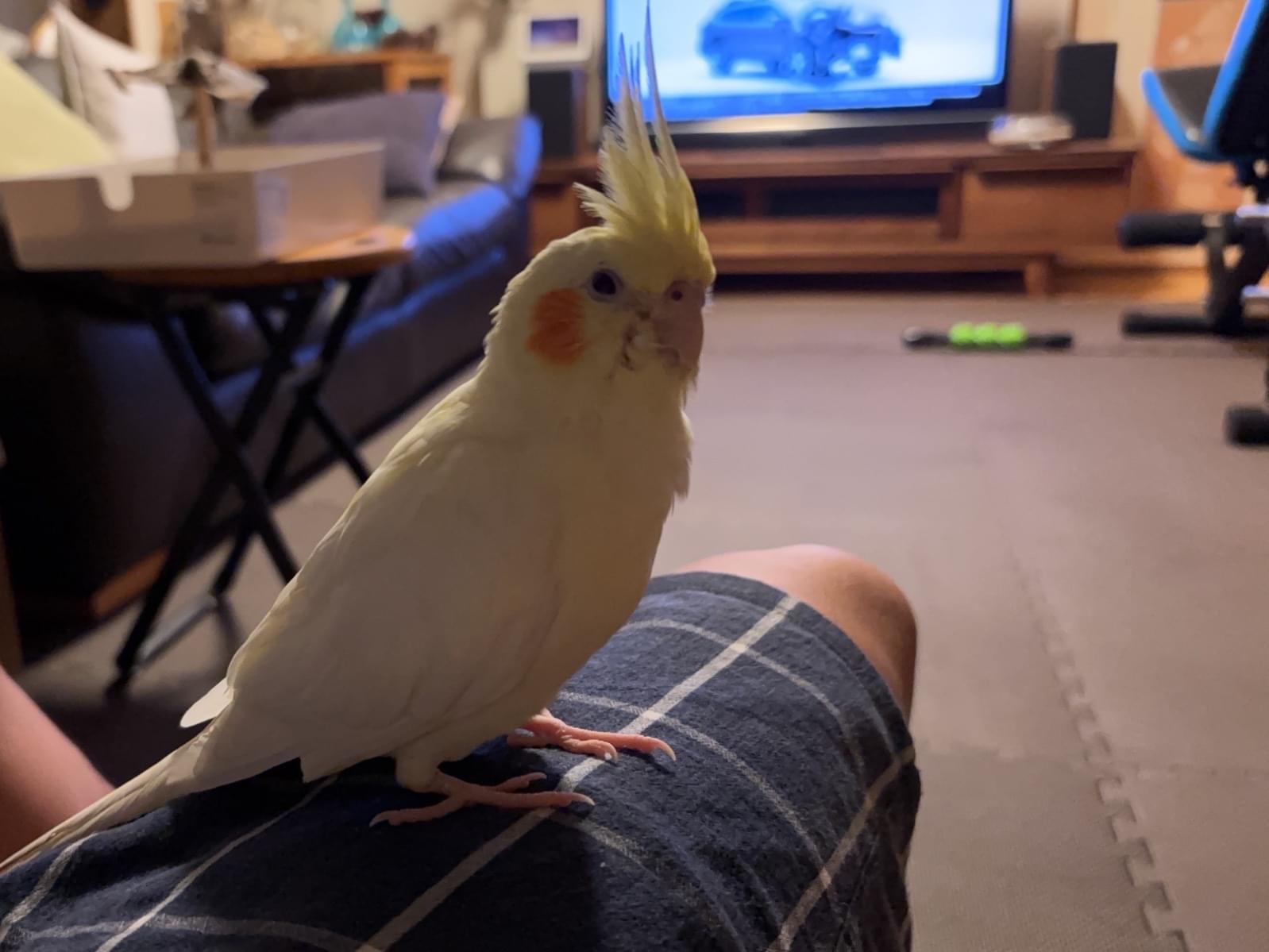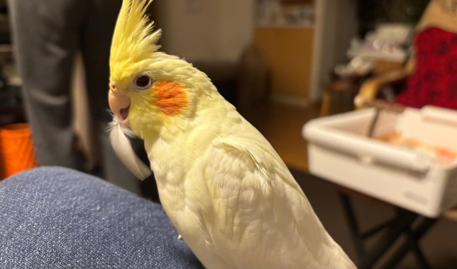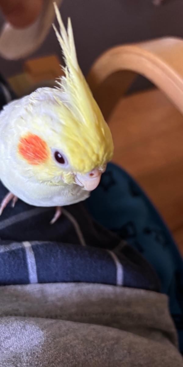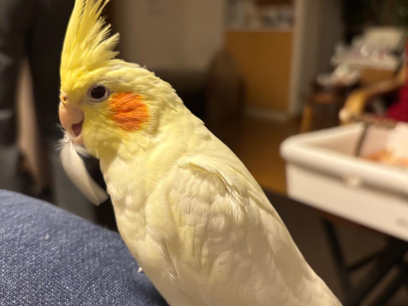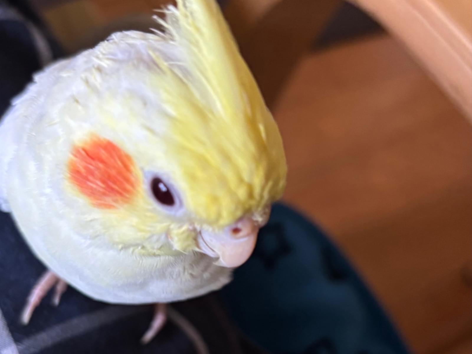 オカメインコ、ルチノー(クリーム色)の成鳥です。