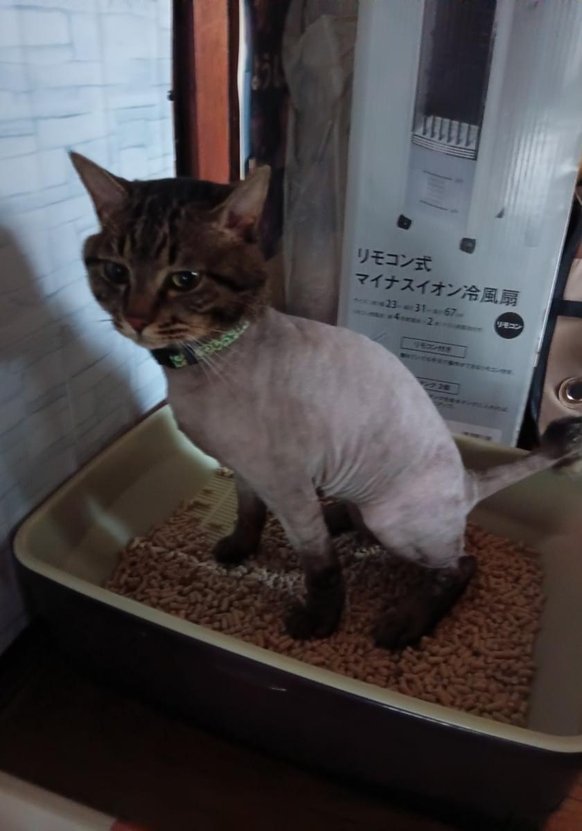 夏に病院で毛を刈ってもらったので顔と尻尾の先以外の毛は薄めです。