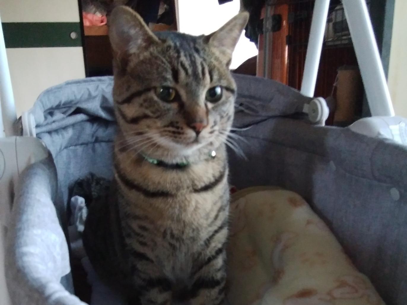 緑色の唐草模様の首輪をしたキジトラのオス猫を探しています。