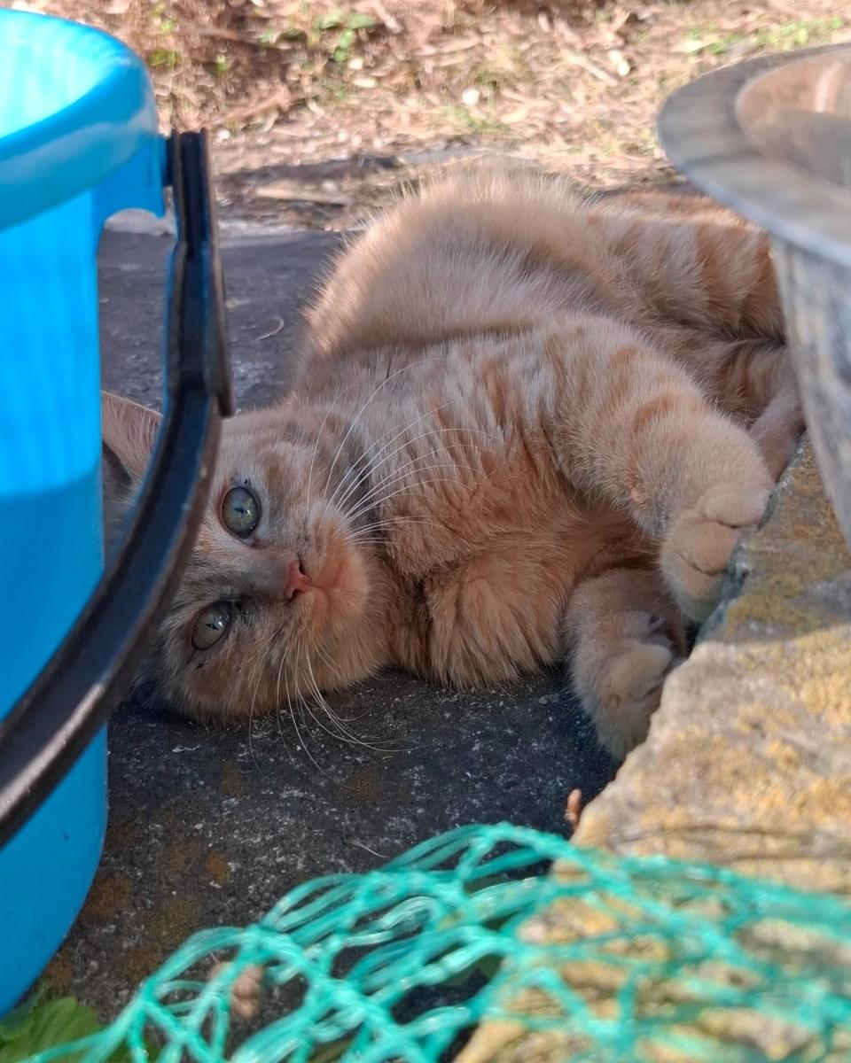 茶トラ子猫が迷いこんできて、お庭に保護しています。