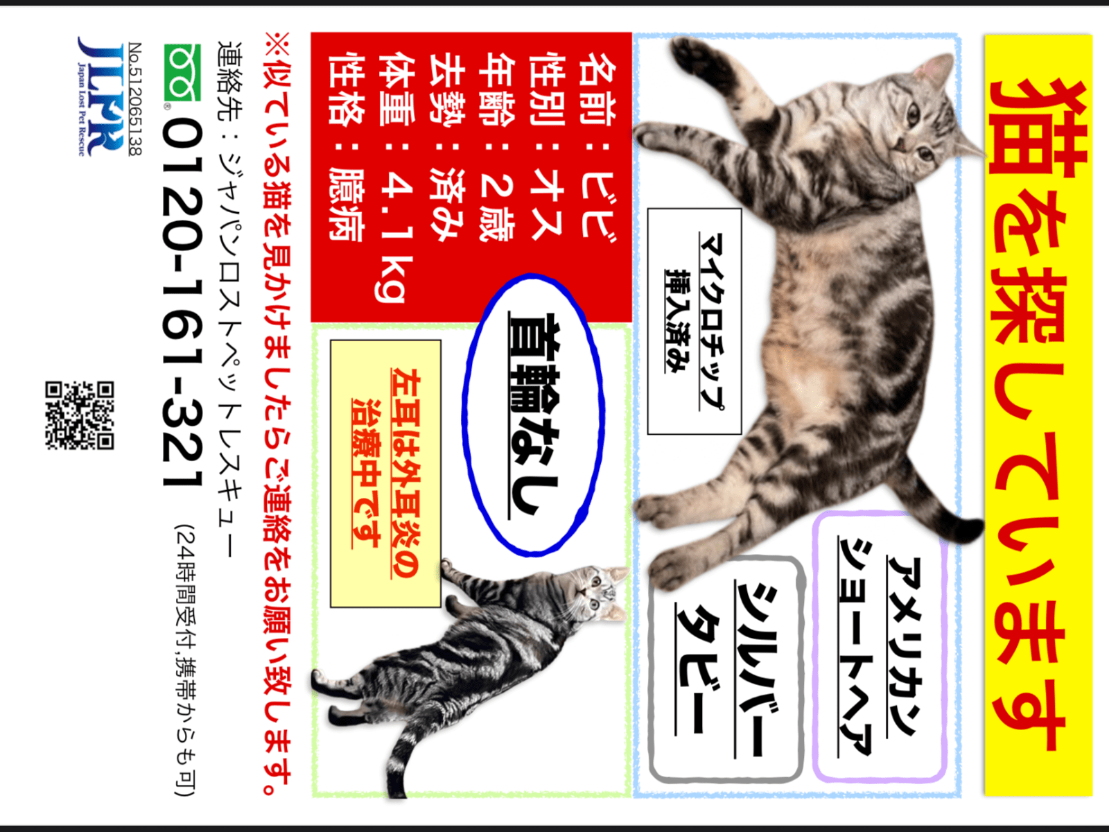 逃げ出したシルバータビーのアメショを探しています。大阪府大阪市福島区大開
