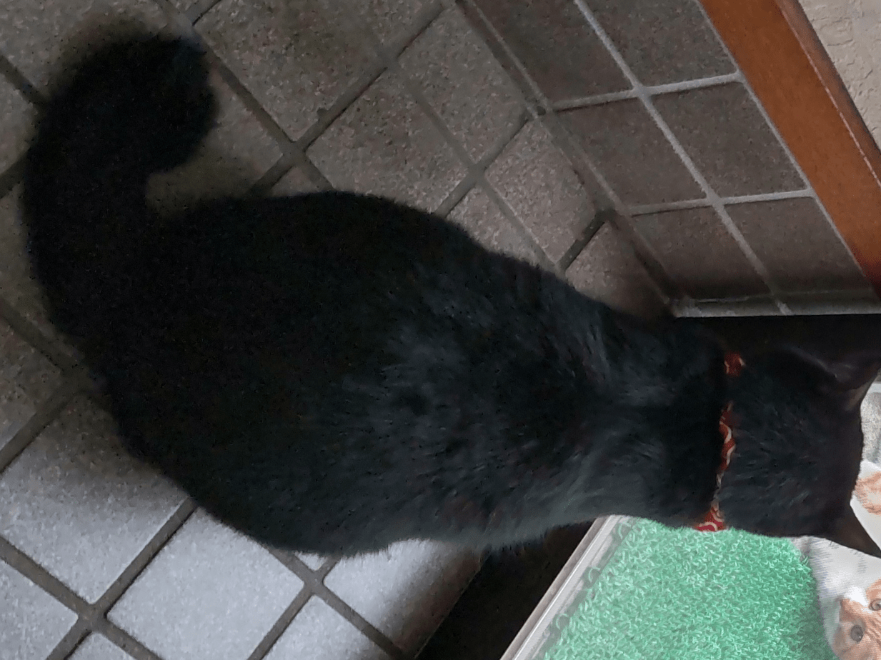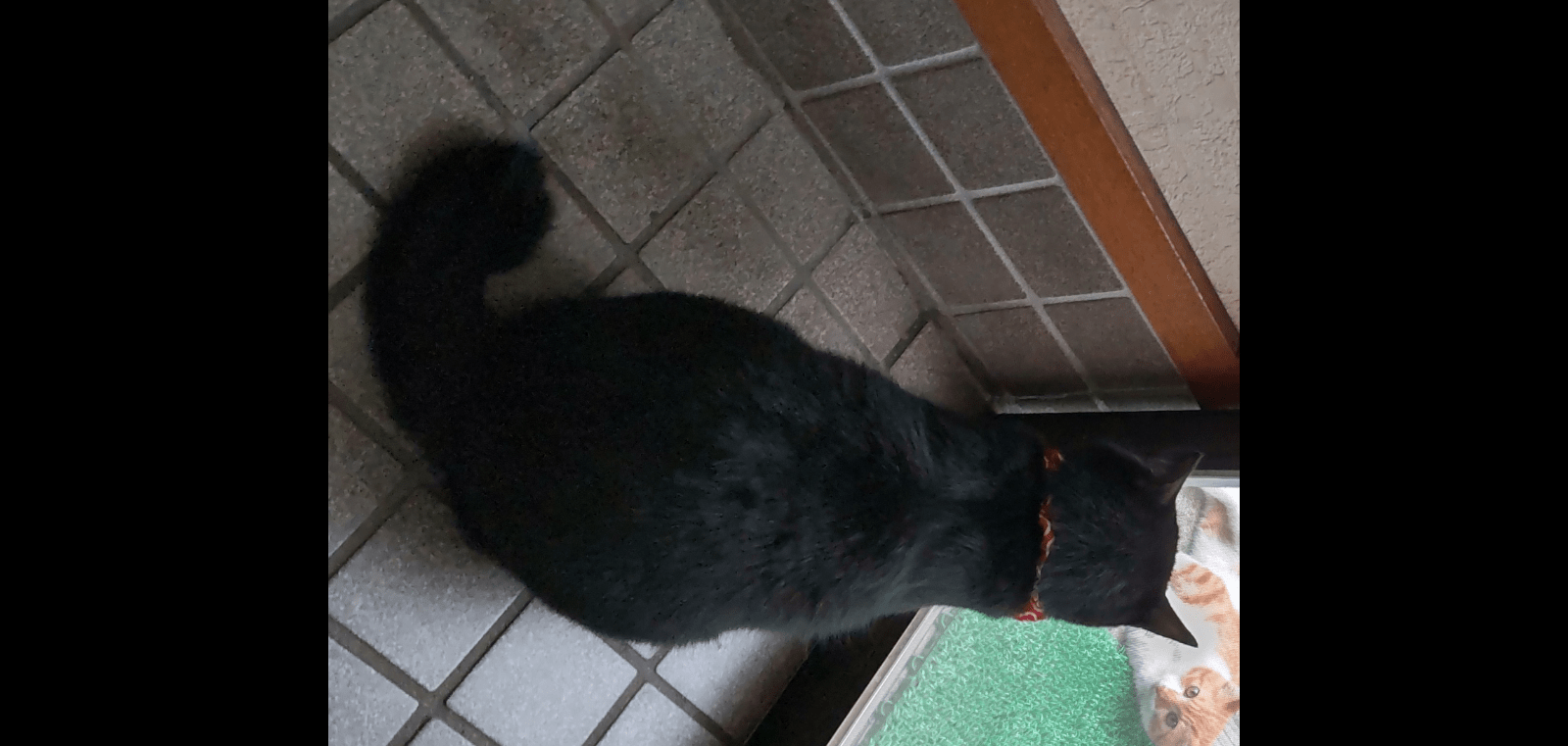 目の黄色い黒猫5歳(去勢済み)を探しています。体重5キロ体長は長め、耳の毛が少し白い。尻尾は太く長さは中くらい、先っぽが折れています。首輪はしていません。
