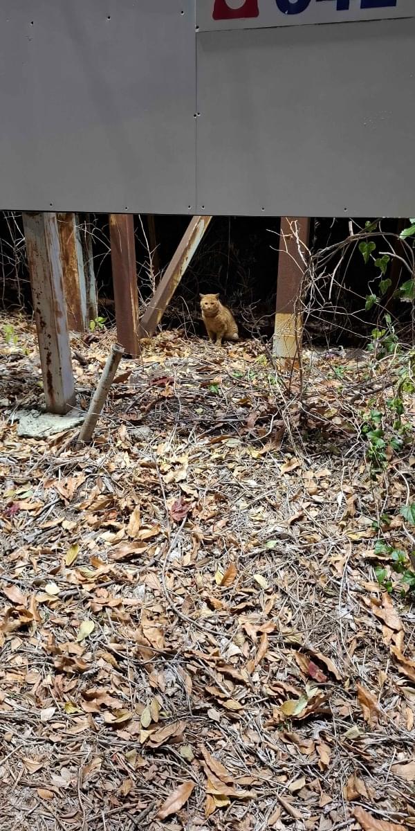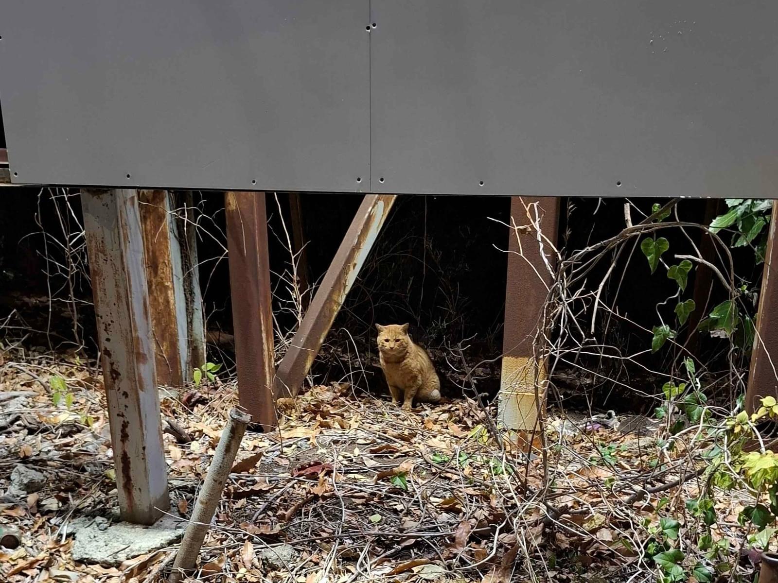 3~4mほど離れた位置にしばらくしゃがんでいると、その場で香箱座りした→人慣れしている