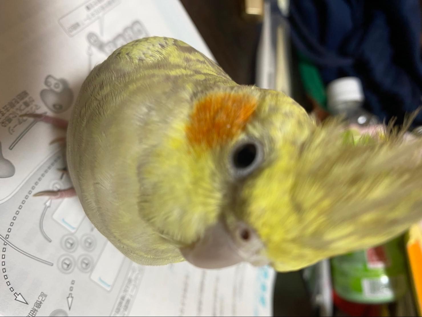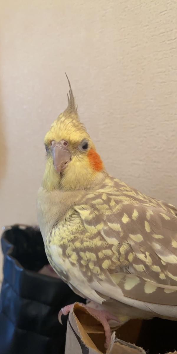 黄色とグレーが混じった模様でオレンジ色のほっぺたをしてます