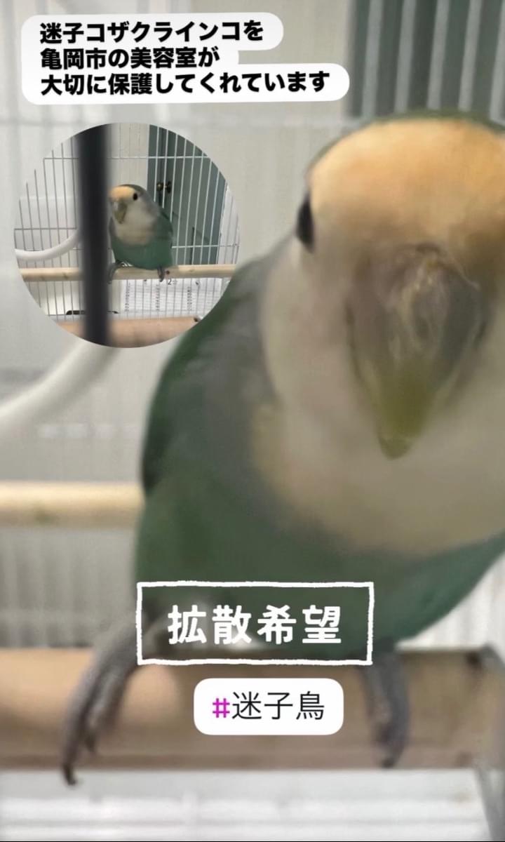 コザクラインコが優しい方に保護されています。