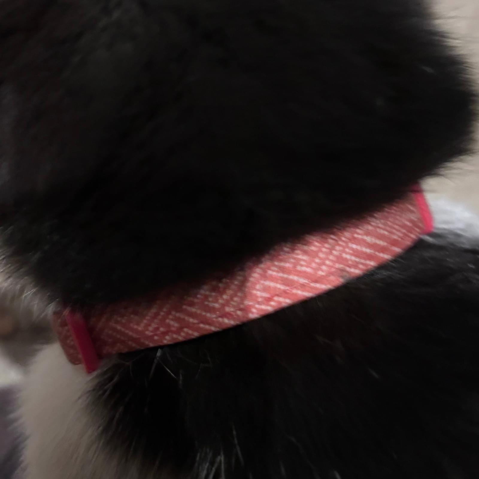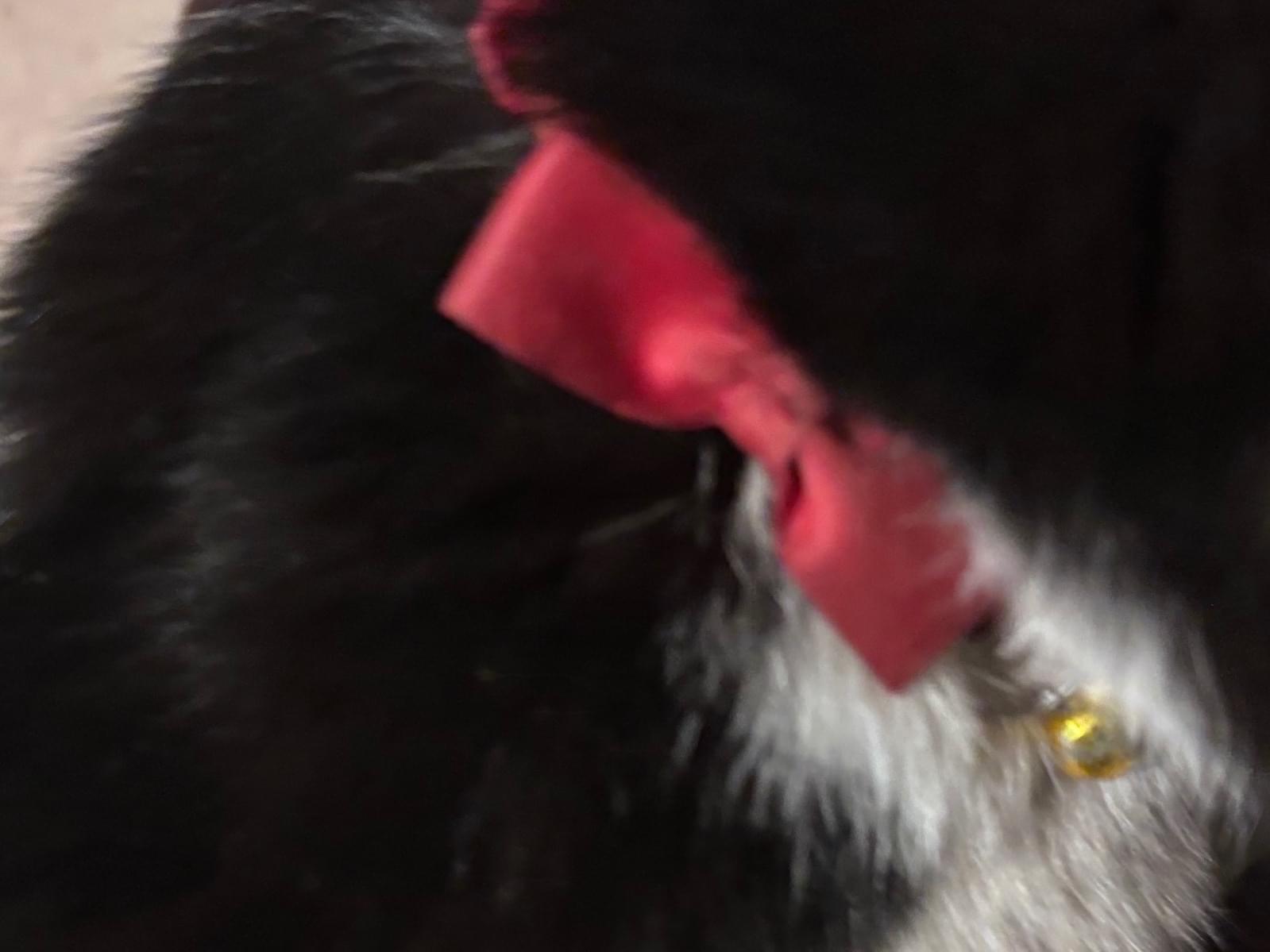 首輪は赤くリボンがついており、鈴付きです。