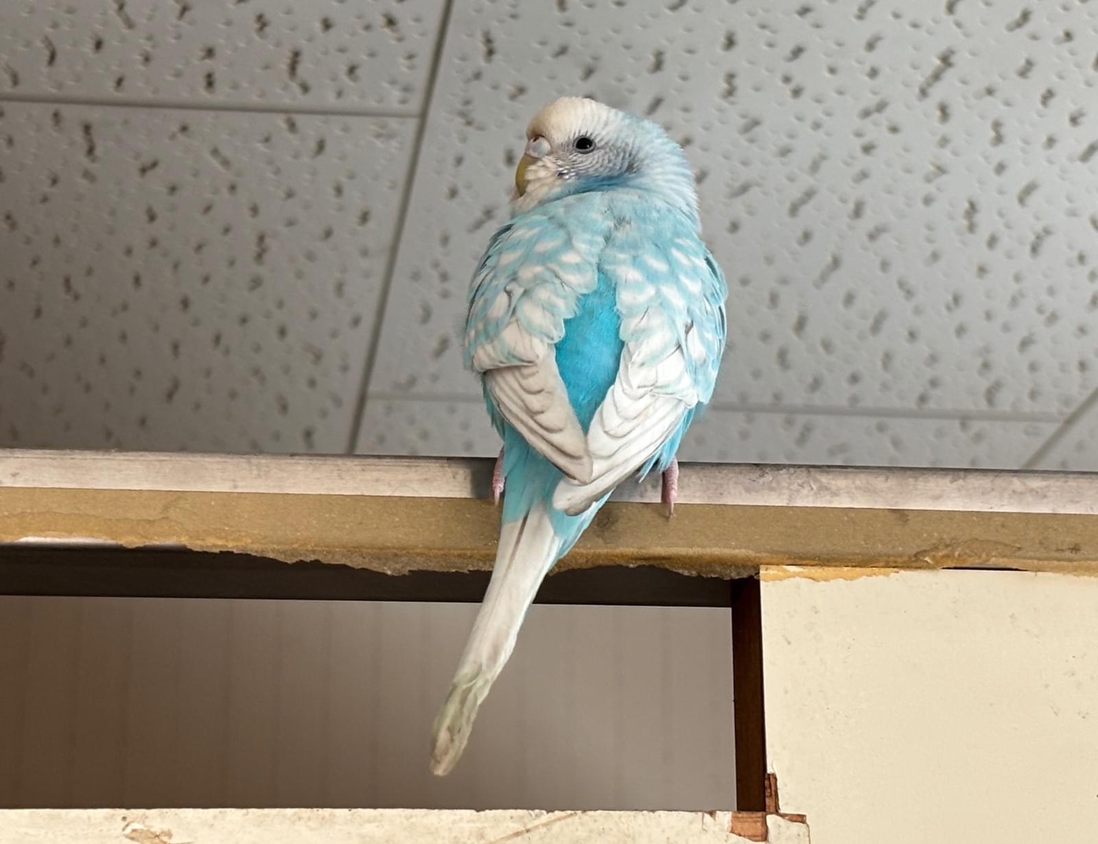 元気な青いセキセイインコを上尾テニスクラブで保護しました。人に慣れていて手から餌も食べるし、手、肩、頭にも乗ってきます。お腹が空いていたのかインコ用の餌をたくさん食べました
