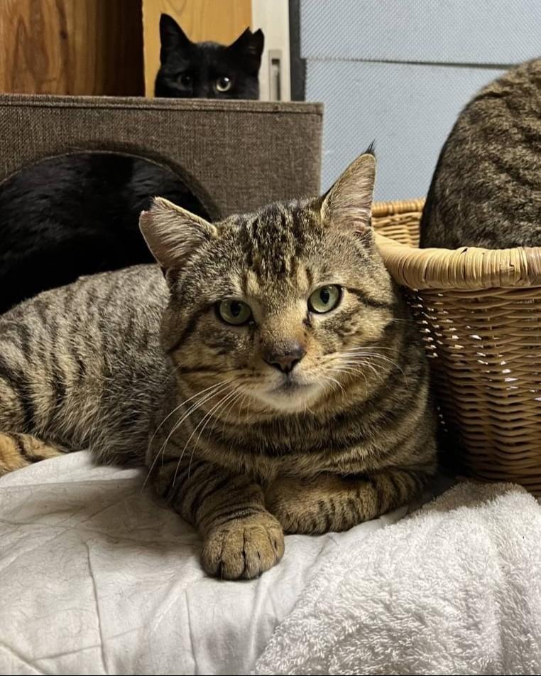 特徴:キジトラ。耳カットしています。鍵しっぽ。首輪はしていません。