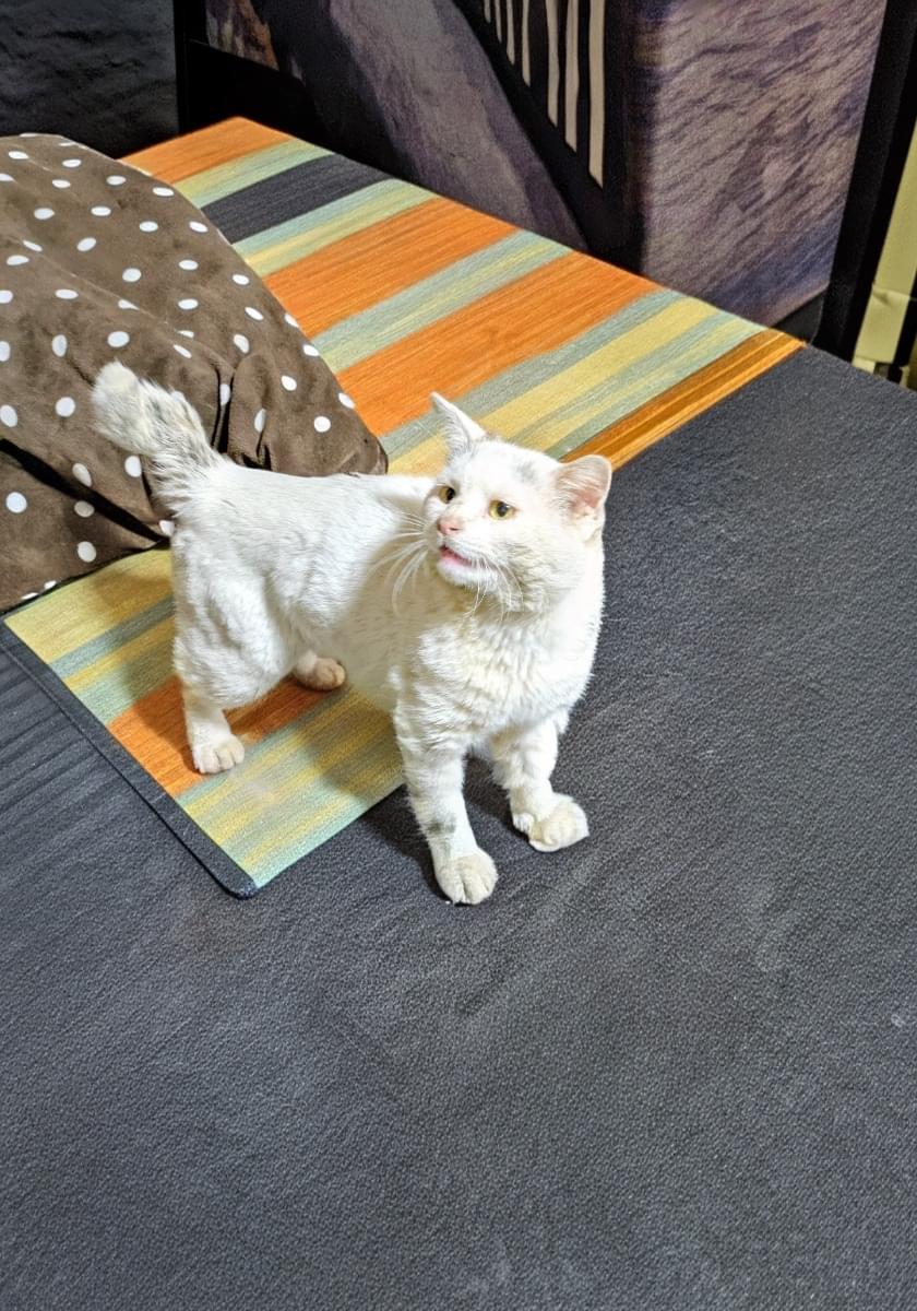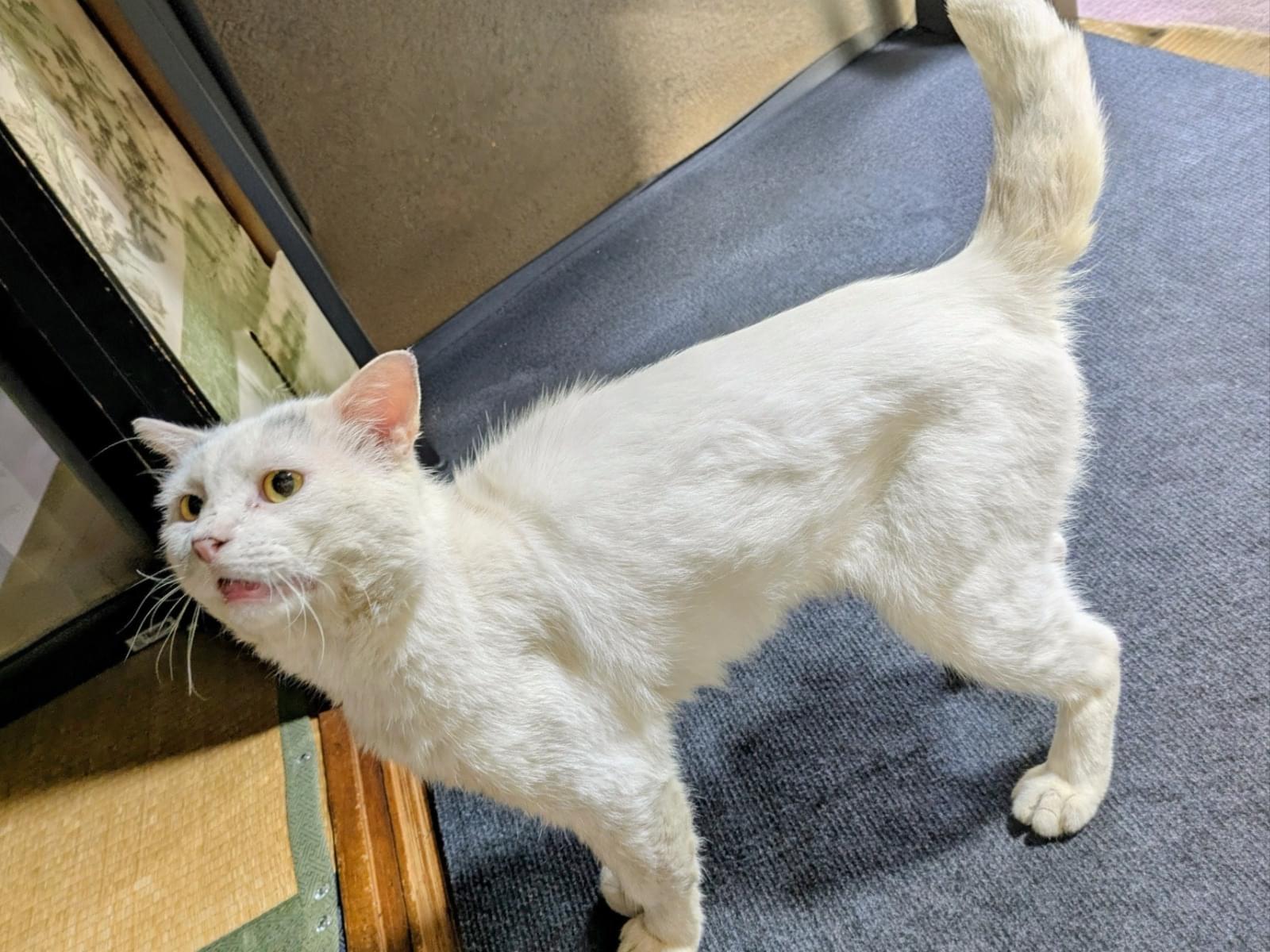 短い鍵しっぽの白猫を探しています