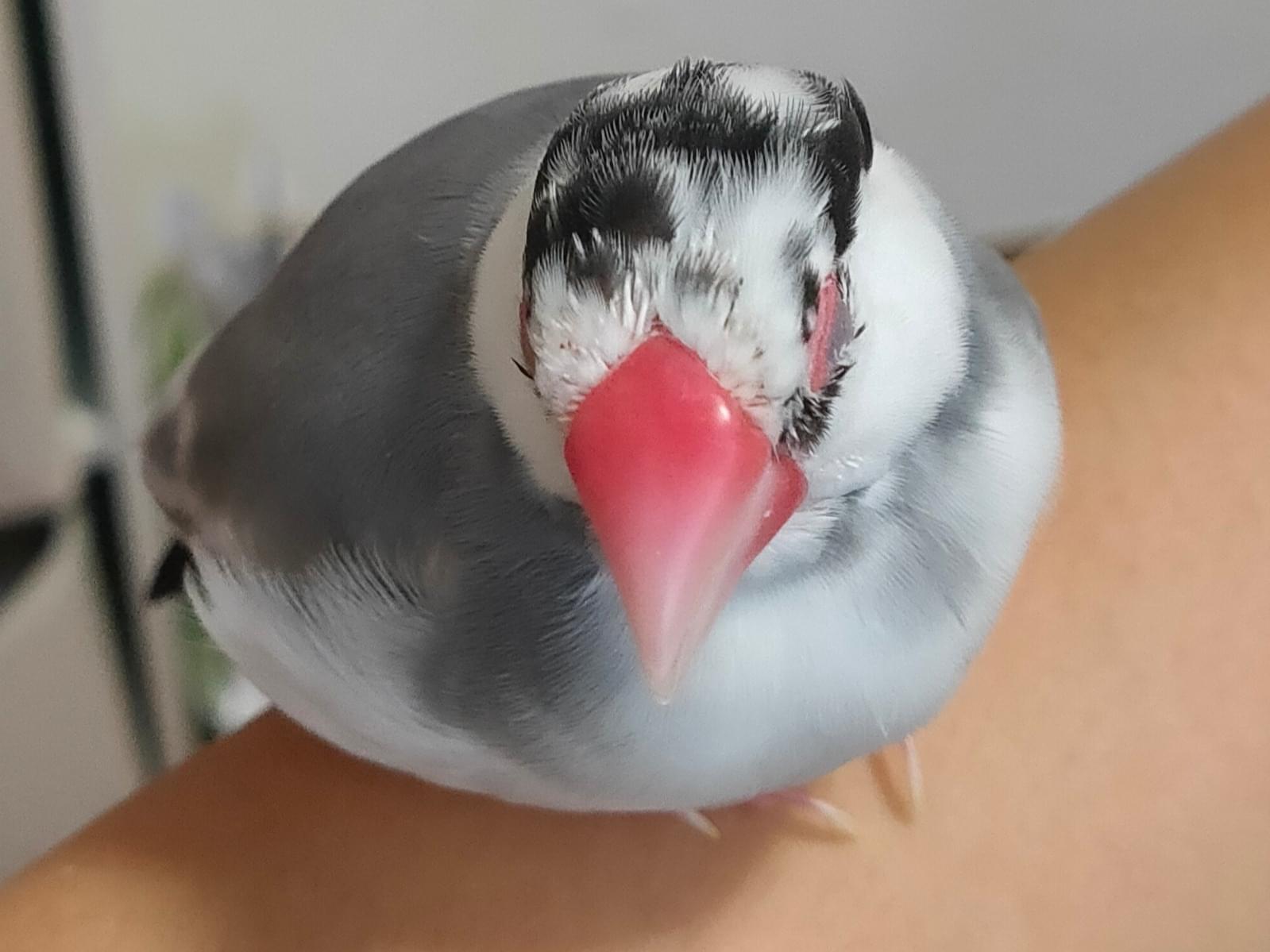桜文鳥を探しています。人見知りはしますが、人懐っこいです。名前を呼ぶと返事します。頭が黒色で白色のまだら模様があります。かなり元気な子です。