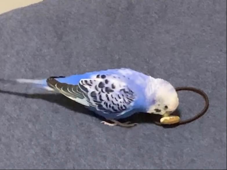 くるみボタンのついたヘアゴムで遊ぶのが好きで、くわえて運び、落としては見下ろしていたりします。