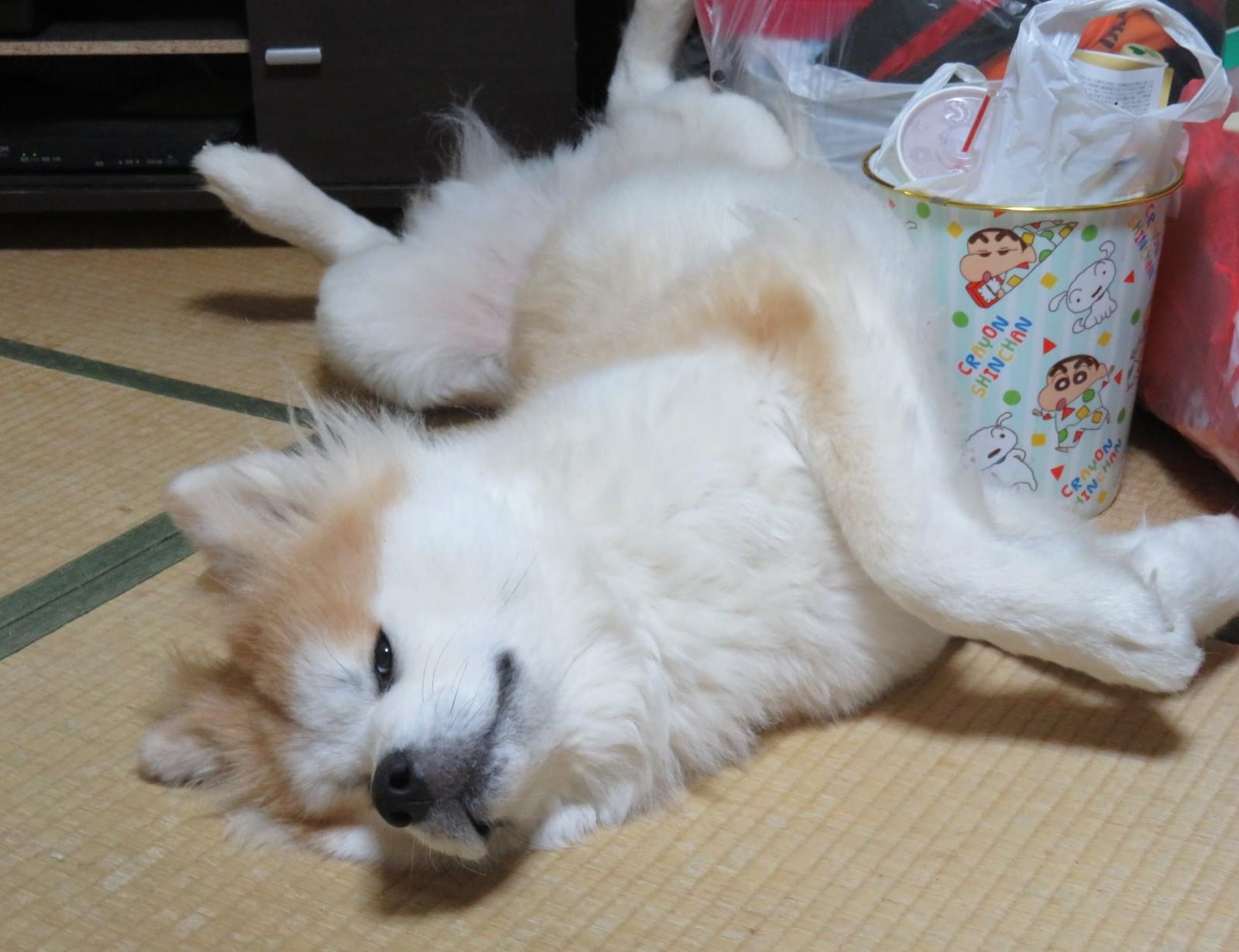 皮膚疾患があり、完全巻き尻尾、耳毛が長い