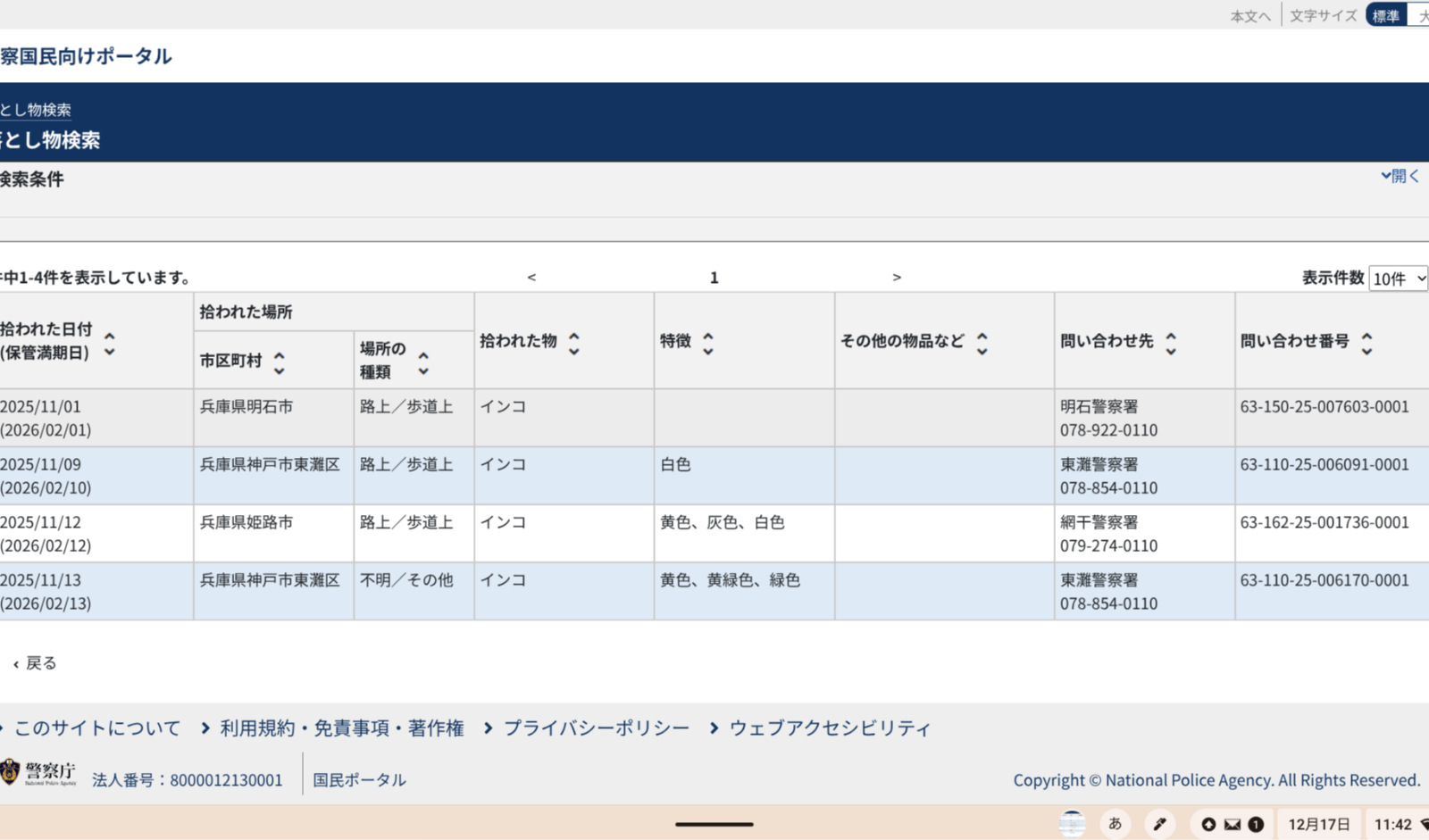 兵庫県内の警察署に11月に8羽のインコさんが保護されています。